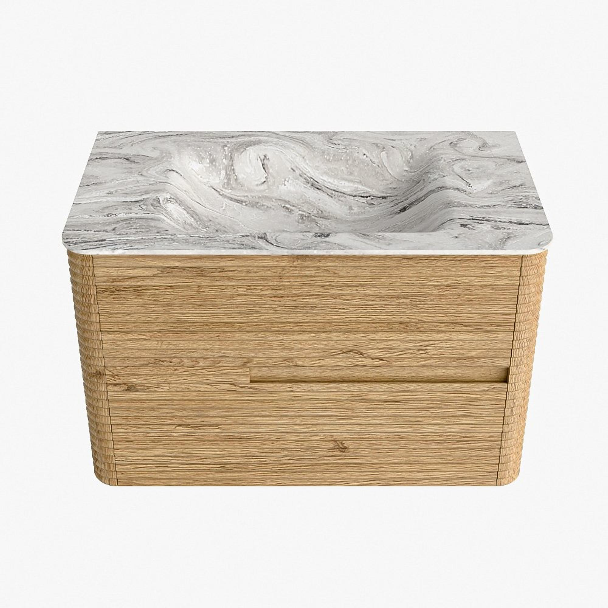 Mondiaz CIRO-DLUX Badkamermeubelset - 80x45x50cm - Solid surface wastafel Glace - 1 wasbak Midden - zonder kraangaten - 2 lades - Oak