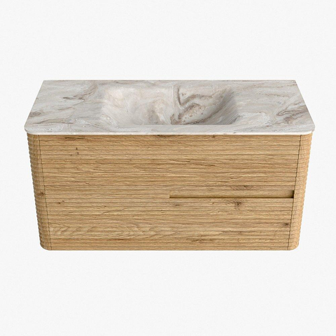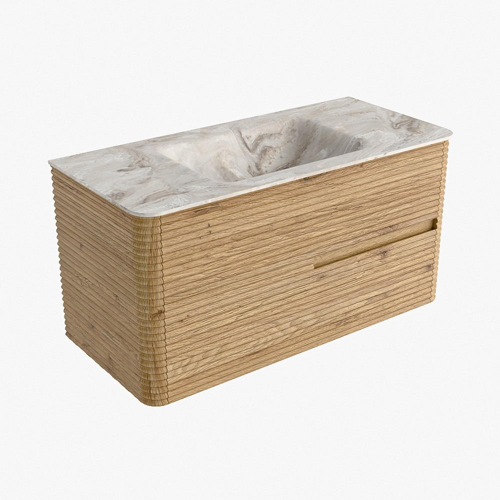 Mondiaz CIRO-DLUX Badkamermeubelset - 100x45x50cm - Solid surface wastafel Frappe - 1 wasbak Midden - zonder kraangaten - 2 lades - Oak