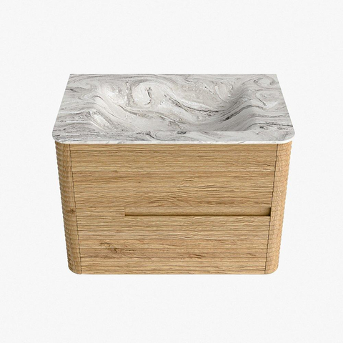 Mondiaz CIRO-DLUX Badkamermeubelset - 70x45x50cm - Solid surface wastafel Glace - 1 wasbak Midden - zonder kraangaten - 2 lades - Oak