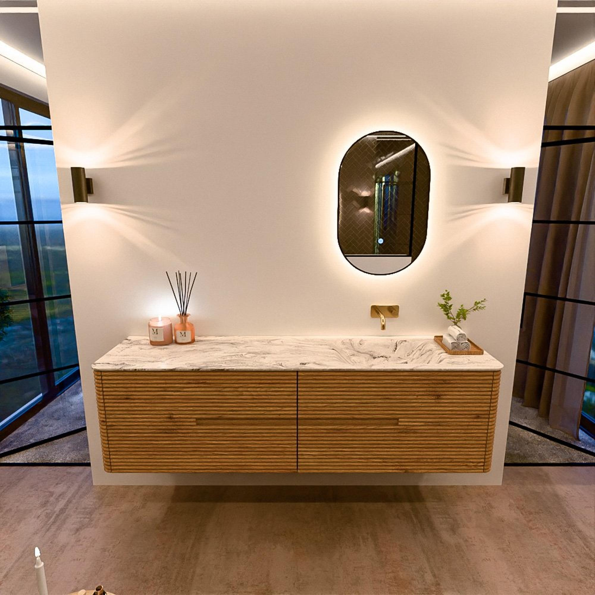 Mondiaz CIRO-DLUX Badkamermeubelset - 180x45x50cm - Solid surface wastafel Glace - 1 wasbak Rechts - zonder kraangaten - 4 lades - Oak