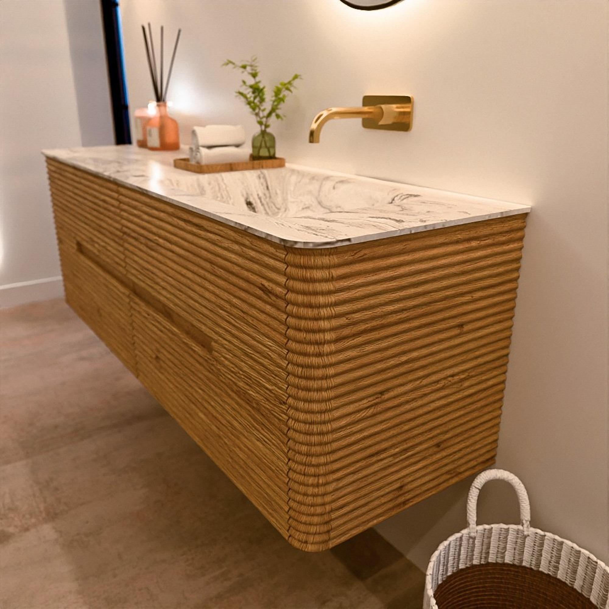 Het CIRO-DLUX badkamermeubel is ontwikkeld voor wie kiest voor modern design, natuurlijke materialen en hoogwaardige functionaliteit. Met maatvoeringen van 70 cm tot 190 cm past de CIRO-serie moeiteloos in zowel compacte badkamers als royale designruimtes. Elk meubel is een uitgebalanceerde combinatie van esthetiek, ambacht en duurzame kwaliteit.