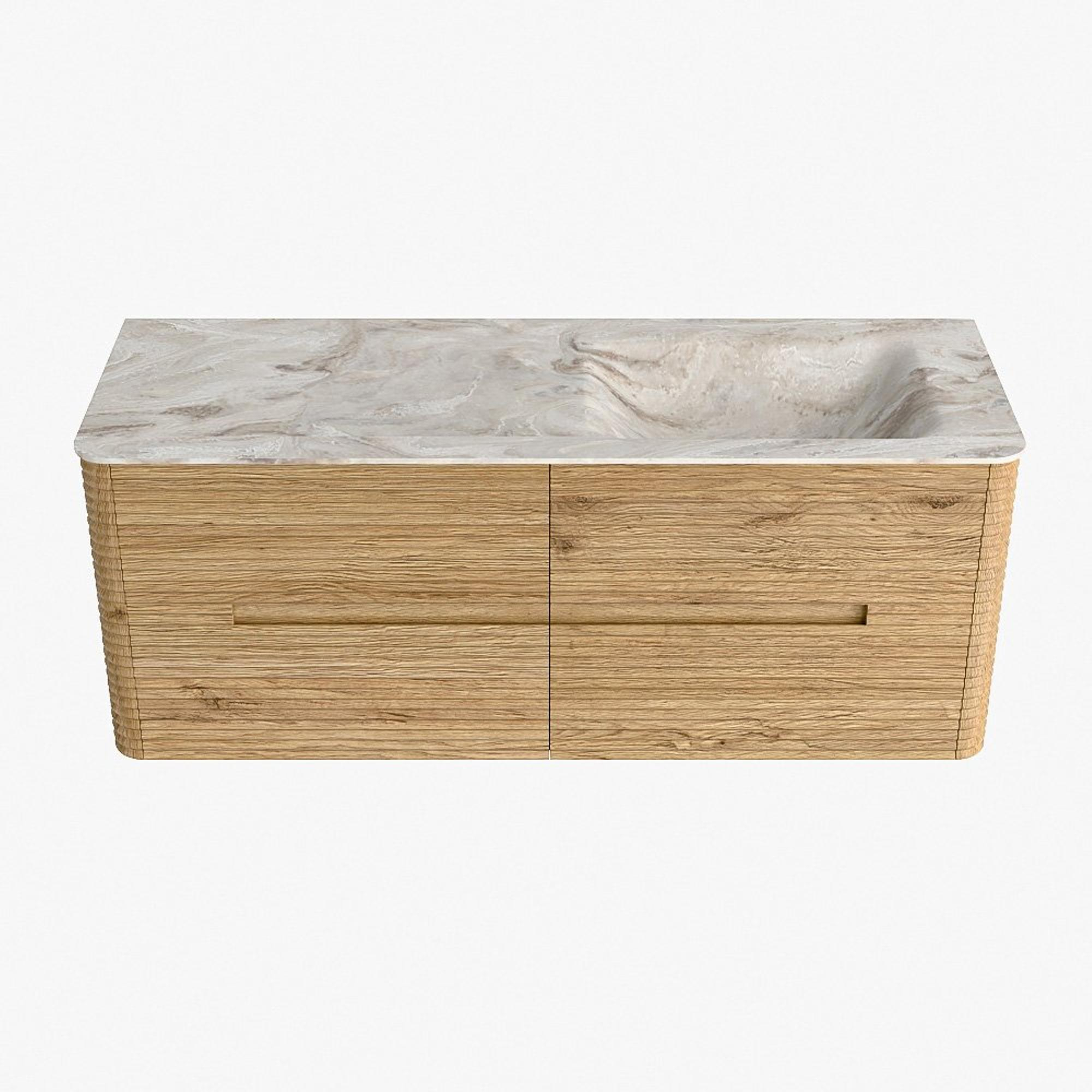 Mondiaz CIRO-DLUX Badkamermeubelset - 130x45x50cm - Solid surface wastafel Frappe - 1 wasbak Rechts - 1 kraangat - 4 lades - Oak