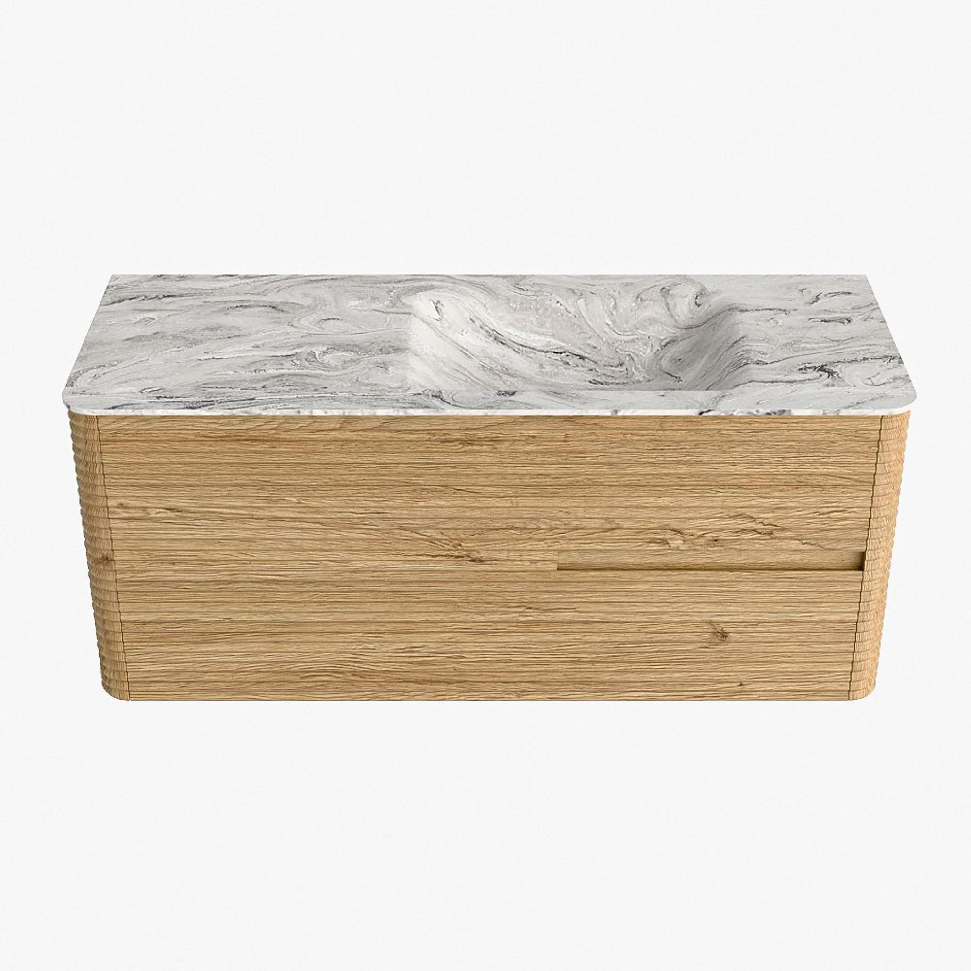 Mondiaz CIRO-DLUX Badkamermeubelset - 120x45x50cm - Solid surface wastafel Glace - 1 wasbak Rechts - zonder kraangaten - 2 lades - Oak