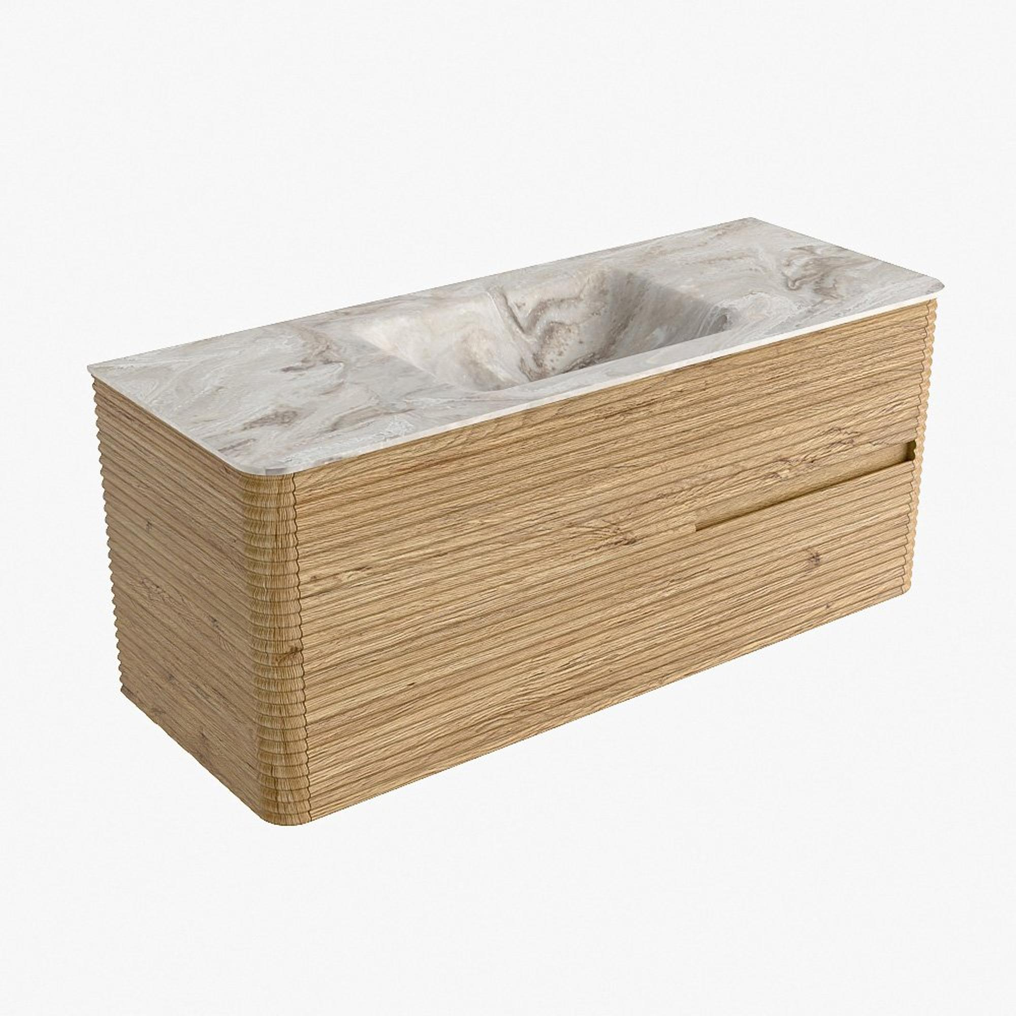 Mondiaz CIRO-DLUX Badkamermeubelset - 120x45x50cm - Solid surface wastafel Frappe - 1 wasbak Midden - zonder kraangaten - 2 lades - Oak