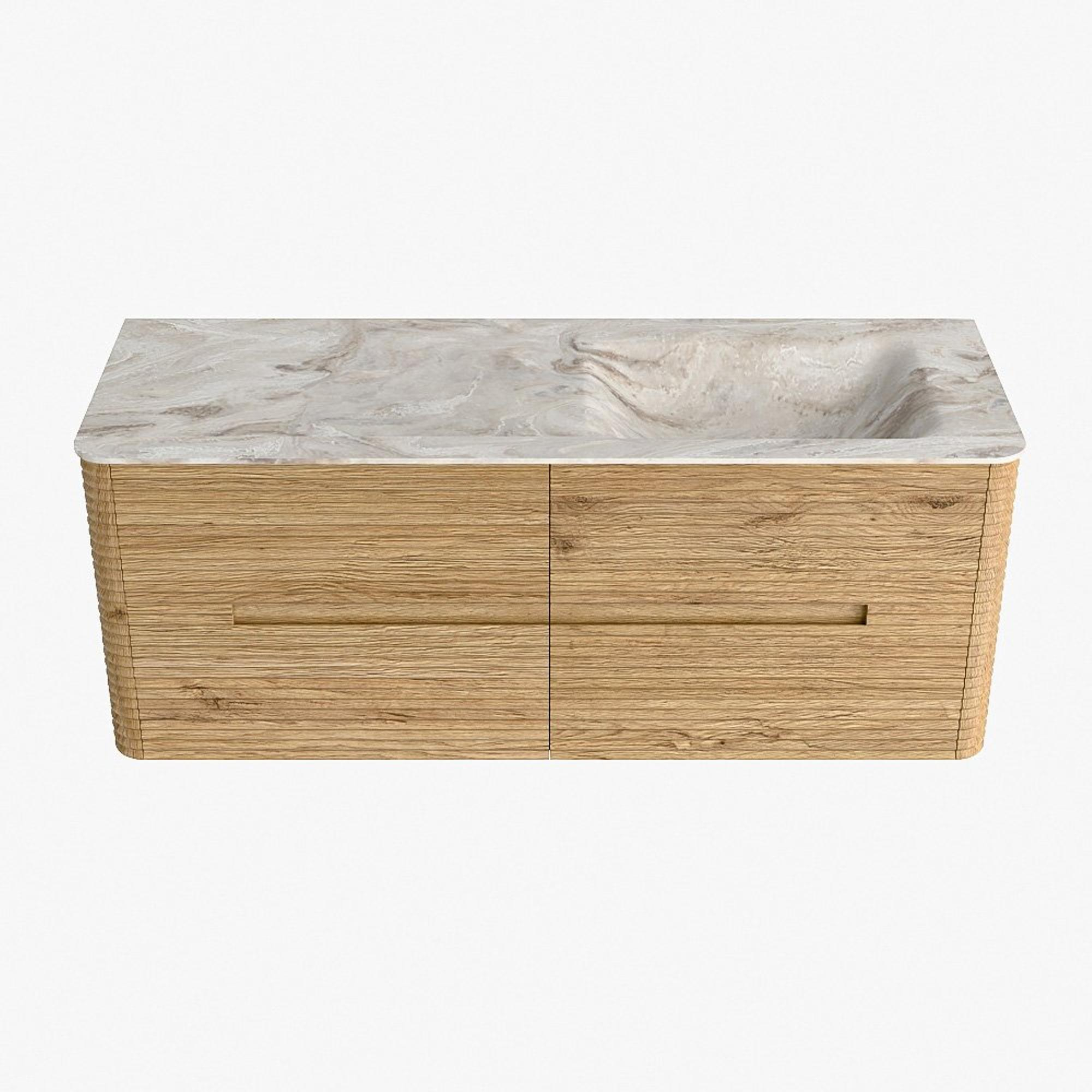 Mondiaz CIRO-DLUX Badkamermeubelset - 130x45x50cm - Solid surface wastafel Frappe - 1 wasbak Rechts - zonder kraangaten - 4 lades - Oak