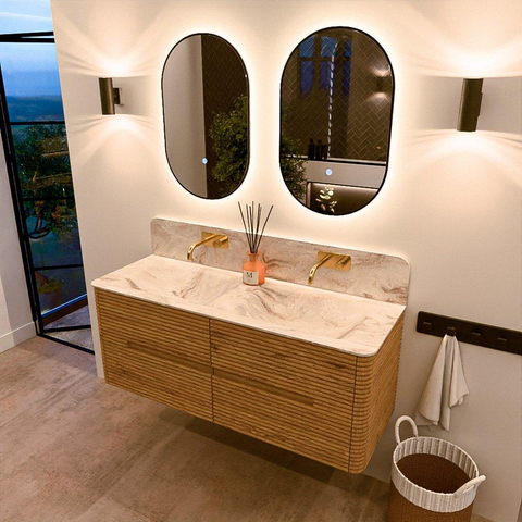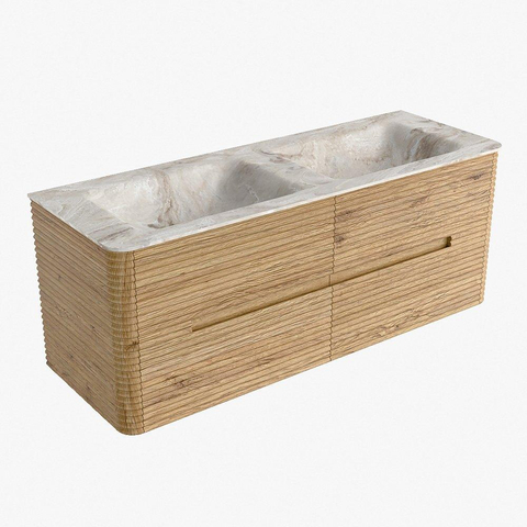 Mondiaz CIRO-DLUX Badkamermeubelset - 130x45x50cm - Solid surface wastafel Frappe - 2 wasbak Dubbel - zonder kraangaten - 4 lades - Oak