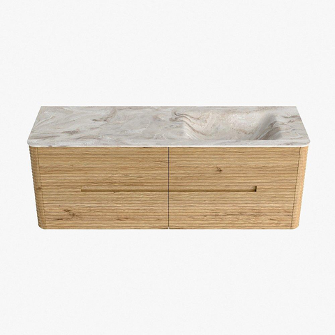 Mondiaz CIRO-DLUX Badkamermeubelset - 140x45x50cm - Solid surface wastafel Frappe - 1 wasbak Rechts - 1 kraangat - 4 lades - Oak