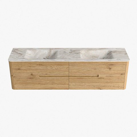 Mondiaz CIRO-DLUX Badkamermeubelset - 180x45x50cm - Solid surface wastafel Frappe - 2 wasbak Dubbel - 2 kraangaten - 4 lades - Oak
