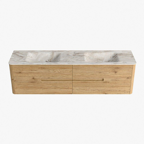 Mondiaz CIRO-DLUX Badkamermeubelset - 180x45x50cm - Solid surface wastafel Frappe - 2 wasbak Dubbel - zonder kraangaten - 4 lades - Oak