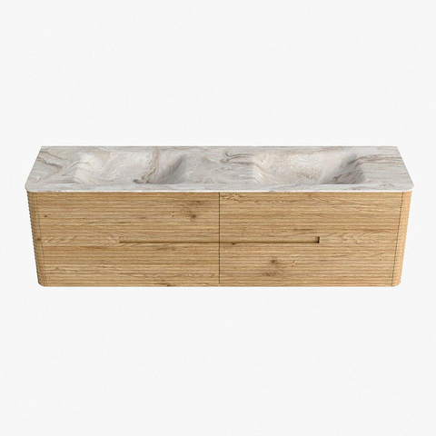 Mondiaz CIRO-DLUX Badkamermeubelset - 170x45x50cm - Solid surface wastafel Frappe - 2 wasbak Dubbel - 2 kraangaten - 4 lades - Oak