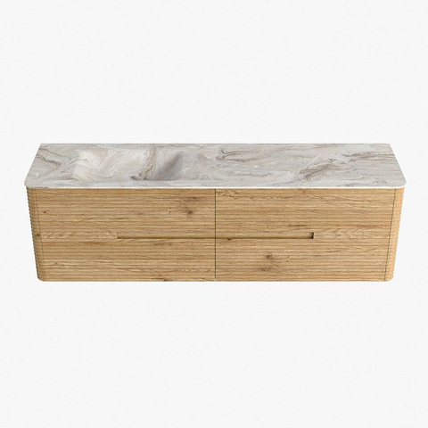 Mondiaz CIRO-DLUX Badkamermeubelset - 170x45x50cm - Solid surface wastafel Frappe - 1 wasbak Links - zonder kraangaten - 4 lades - Oak
