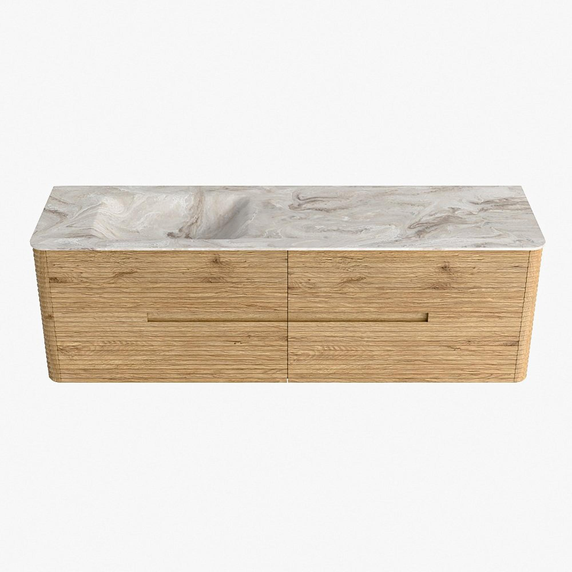 Mondiaz CIRO-DLUX Badkamermeubelset - 160x45x50cm - Solid surface wastafel Frappe - 1 wasbak Links - zonder kraangaten - 4 lades - Oak