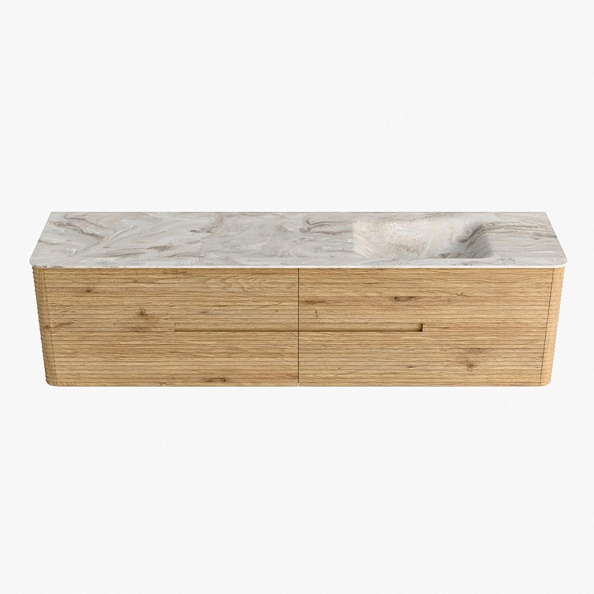 Mondiaz CIRO-DLUX Badkamermeubelset - 190x45x50cm - Solid surface wastafel Frappe - 1 wasbak Rechts - zonder kraangaten - 4 lades - Oak