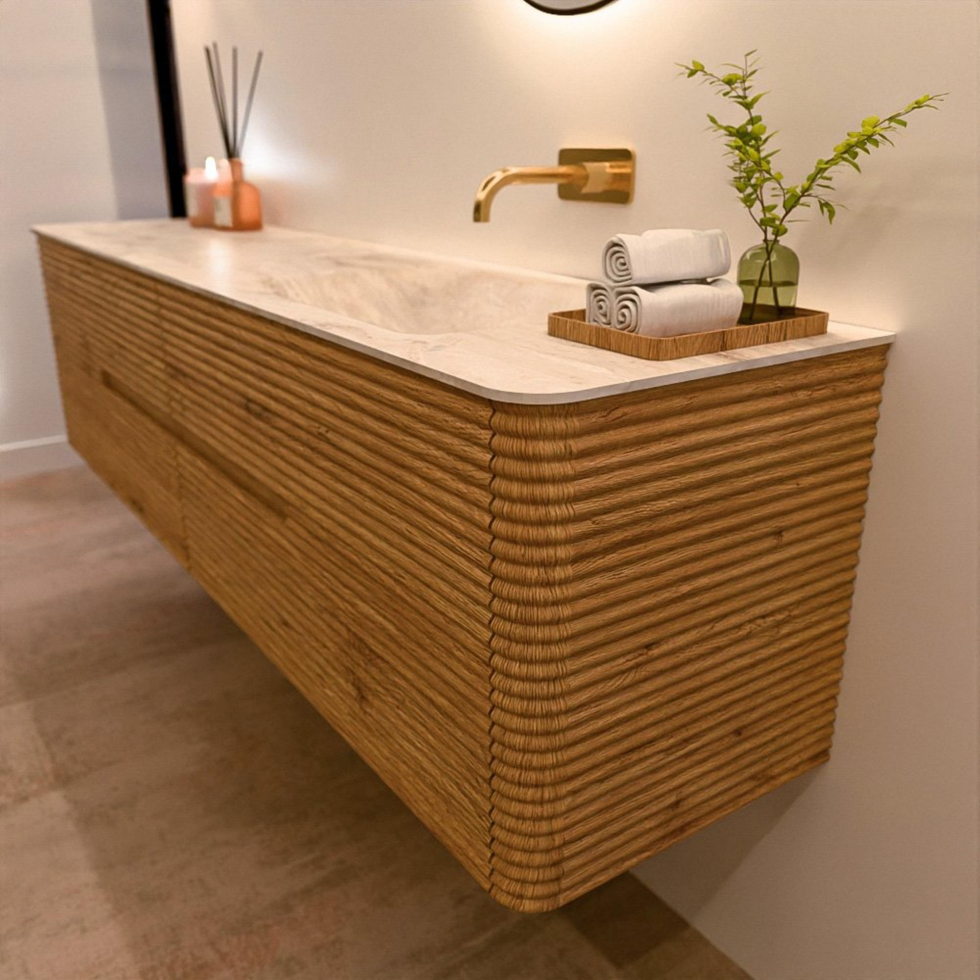 Het CIRO-DLUX badkamermeubel is ontwikkeld voor wie kiest voor modern design, natuurlijke materialen en hoogwaardige functionaliteit. Met maatvoeringen van 70 cm tot 190 cm past de CIRO-serie moeiteloos in zowel compacte badkamers als royale designruimtes. Elk meubel is een uitgebalanceerde combinatie van esthetiek, ambacht en duurzame kwaliteit.
