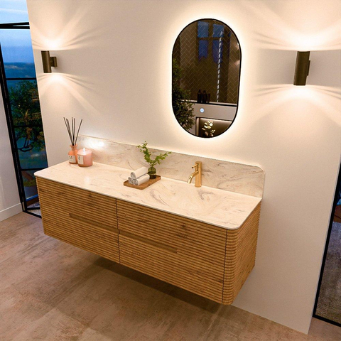 Mondiaz CIRO-DLUX Badkamermeubelset - 160x45x50cm - Solid surface wastafel Ostra - 1 wasbak Rechts - 1 kraangat - 4 lades - Oak