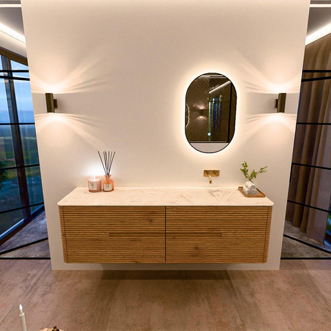 Mondiaz CIRO-DLUX Badkamermeubelset - 170x45x50cm - Solid surface wastafel Ostra - 1 wasbak Rechts - zonder kraangaten - 4 lades - Oak