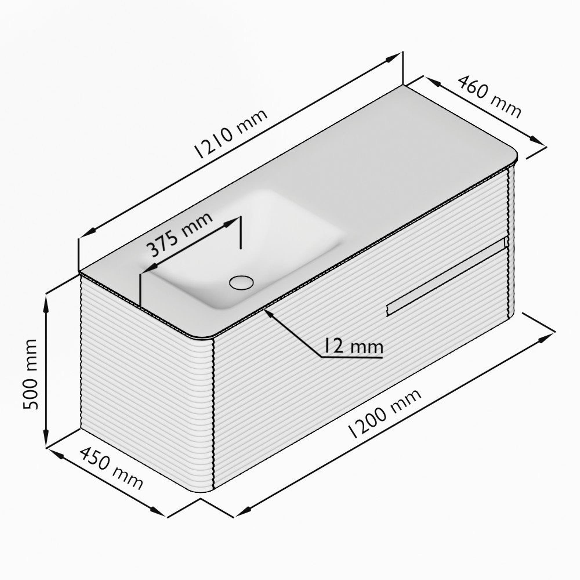 - Breedte wastafel: 121cm