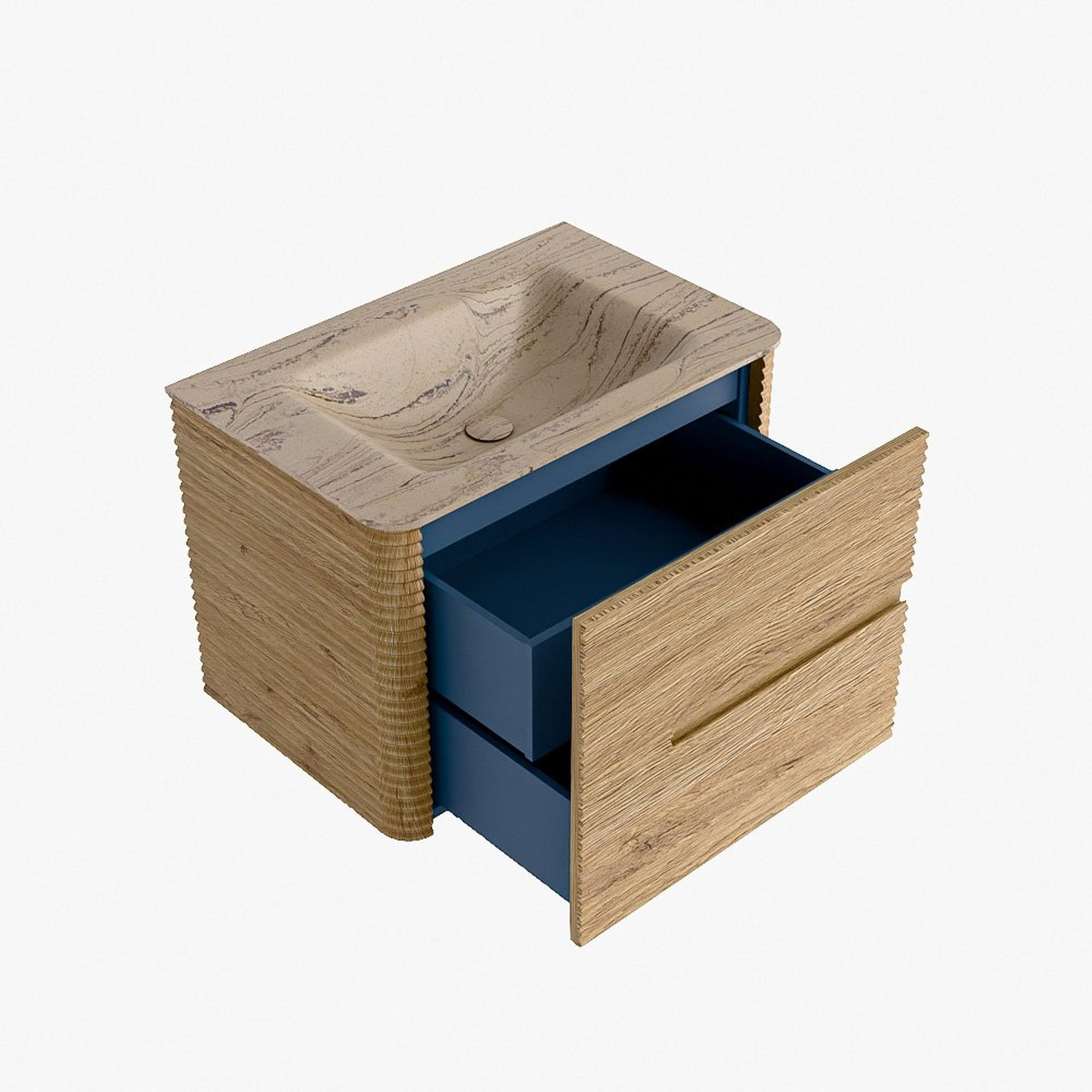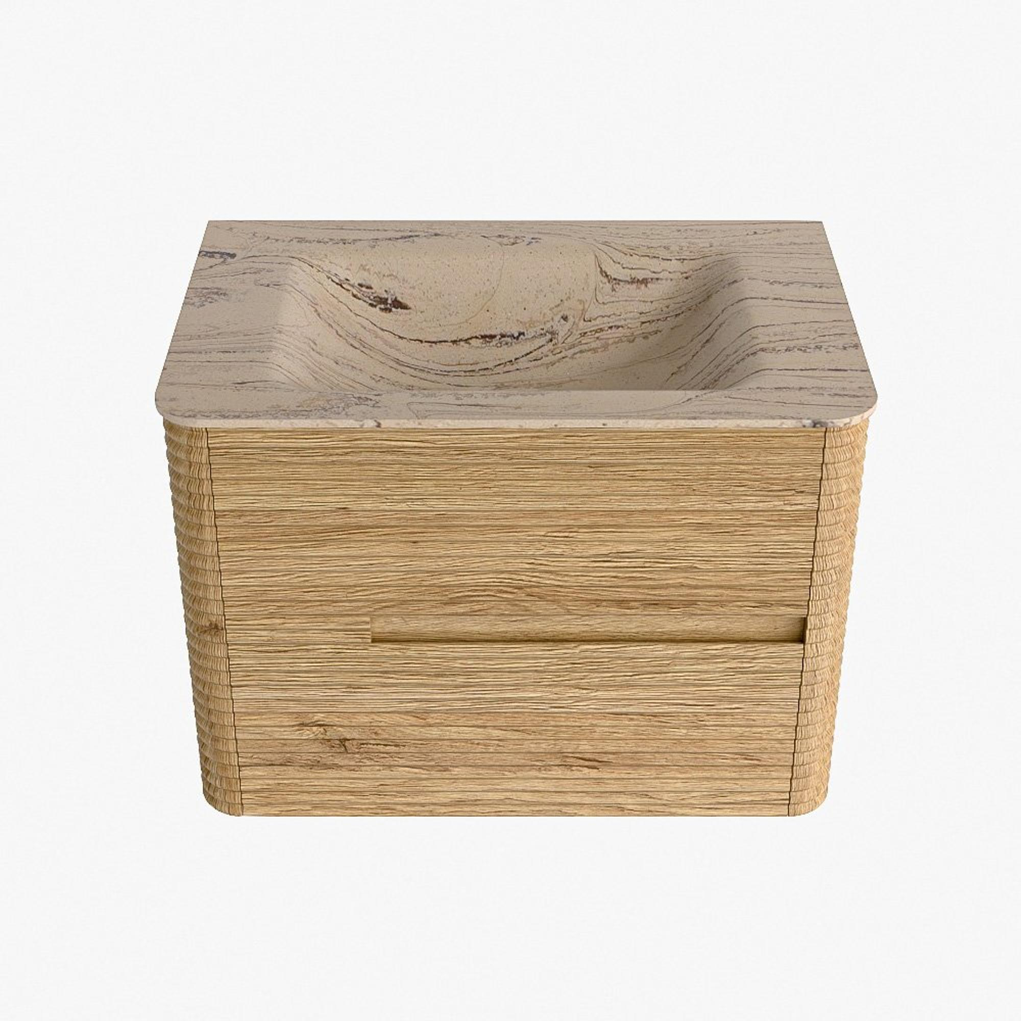 Mondiaz CIRO-DLUX Badkamermeubelset - 70x45x50cm - Solid surface wastafel Arena - 1 wasbak Midden - zonder kraangaten - 2 lades - Oak