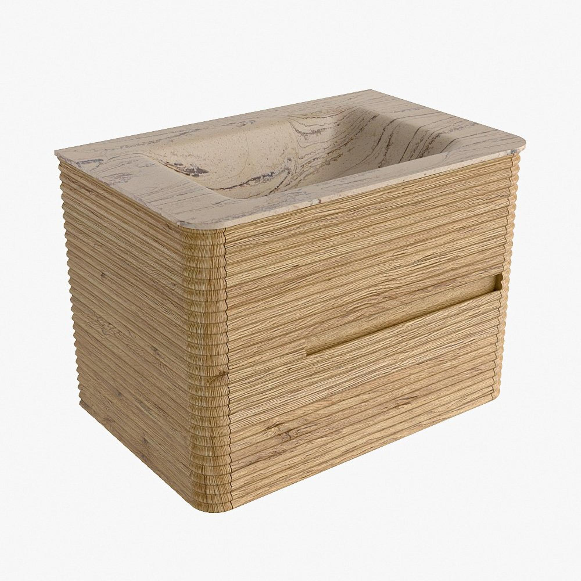 Mondiaz CIRO-DLUX Badkamermeubelset - 70x45x50cm - Solid surface wastafel Arena - 1 wasbak Midden - 1 kraangat - 2 lades - Oak