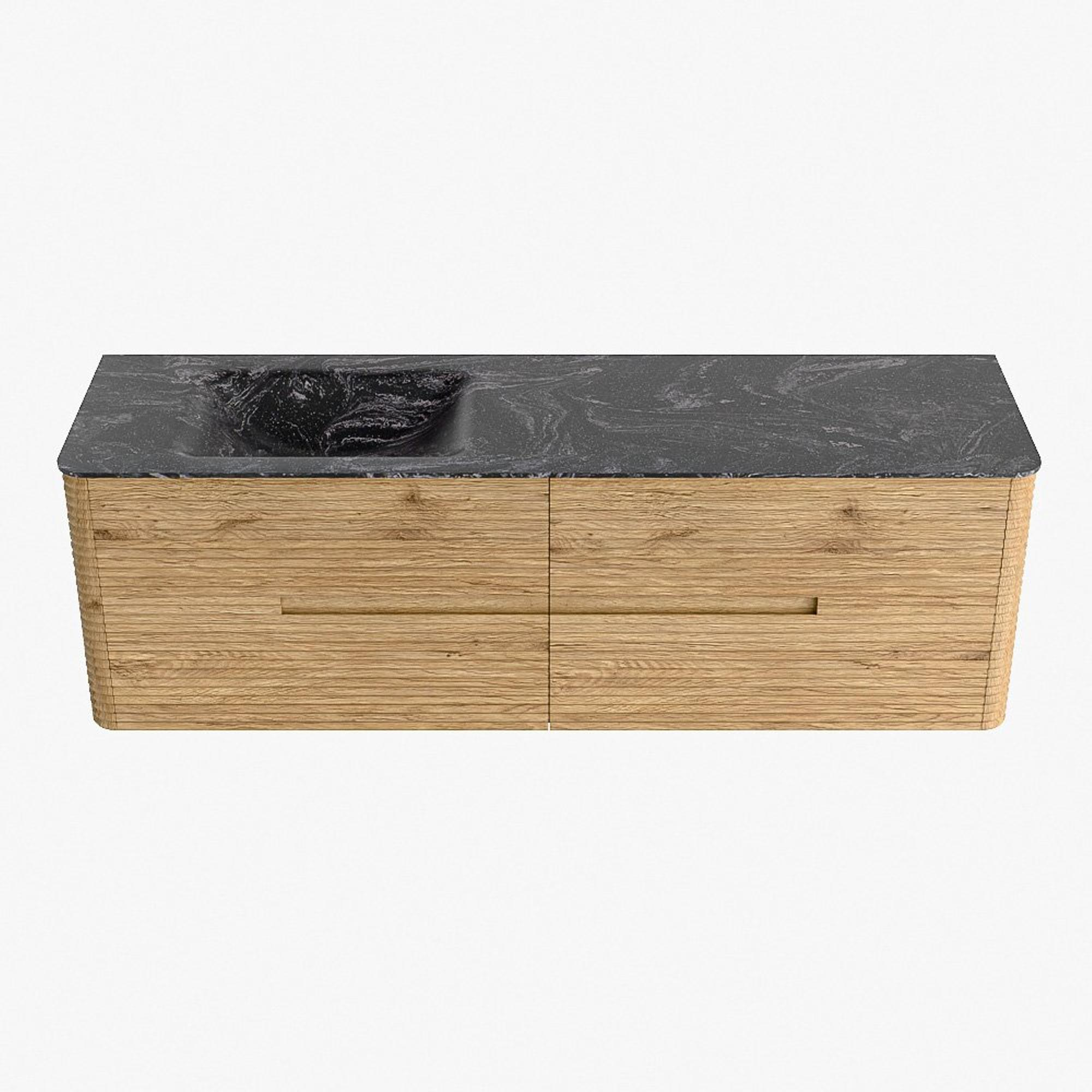 Mondiaz CIRO-DLUX Badkamermeubelset - 160x45x50cm - Solid surface wastafel Lava - 1 wasbak Links - 1 kraangat - 4 lades - Oak
