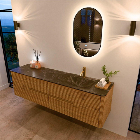 Mondiaz CIRO-DLUX Badkamermeubelset - 180x45x50cm - Solid surface wastafel Lava - 1 wasbak Rechts - 1 kraangat - 4 lades - Oak