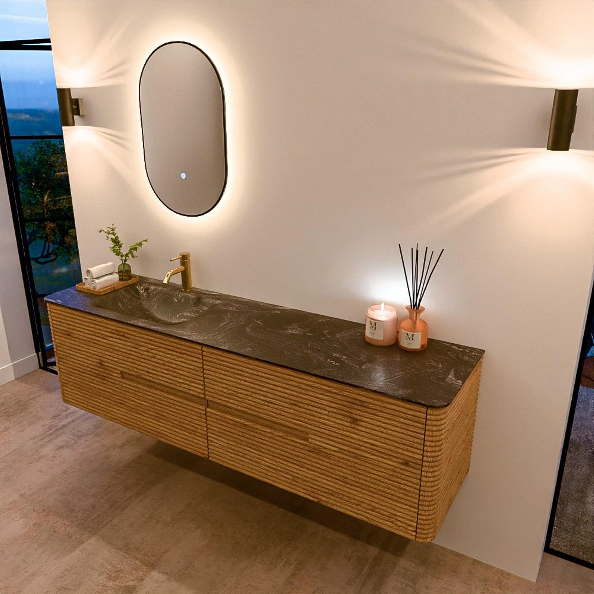 Mondiaz CIRO-DLUX Badkamermeubelset - 180x45x50cm - Solid surface wastafel Lava - 1 wasbak Links - 1 kraangat - 4 lades - Oak