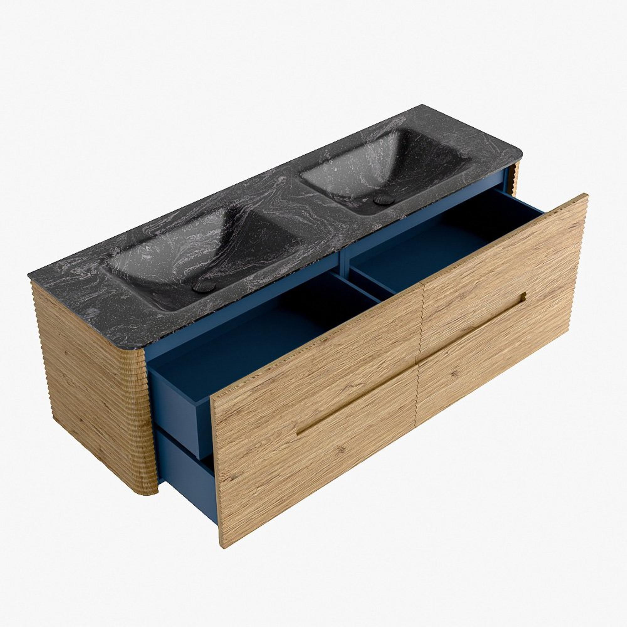 Mondiaz CIRO-DLUX Badkamermeubelset - 150x45x50cm - Solid surface wastafel Lava - 2 wasbak Dubbel - zonder kraangaten - 4 lades - Oak
