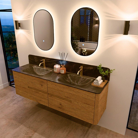 Mondiaz CIRO-DLUX Badkamermeubelset - 170x45x50cm - Solid surface wastafel Lava - 2 wasbak Dubbel - 2 kraangaten - 4 lades - Oak