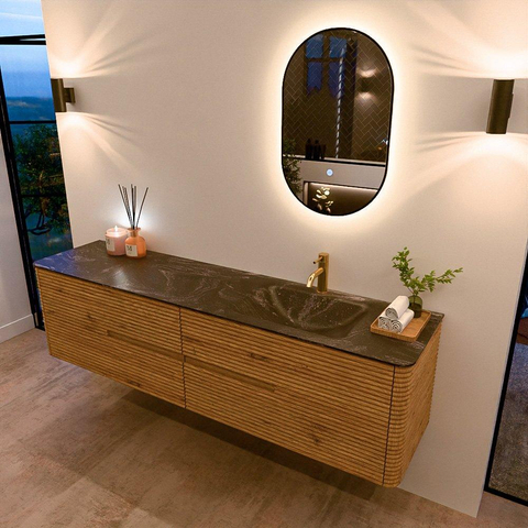 Mondiaz CIRO-DLUX Badkamermeubelset - 190x45x50cm - Solid surface wastafel Lava - 1 wasbak Rechts - 1 kraangat - 4 lades - Oak