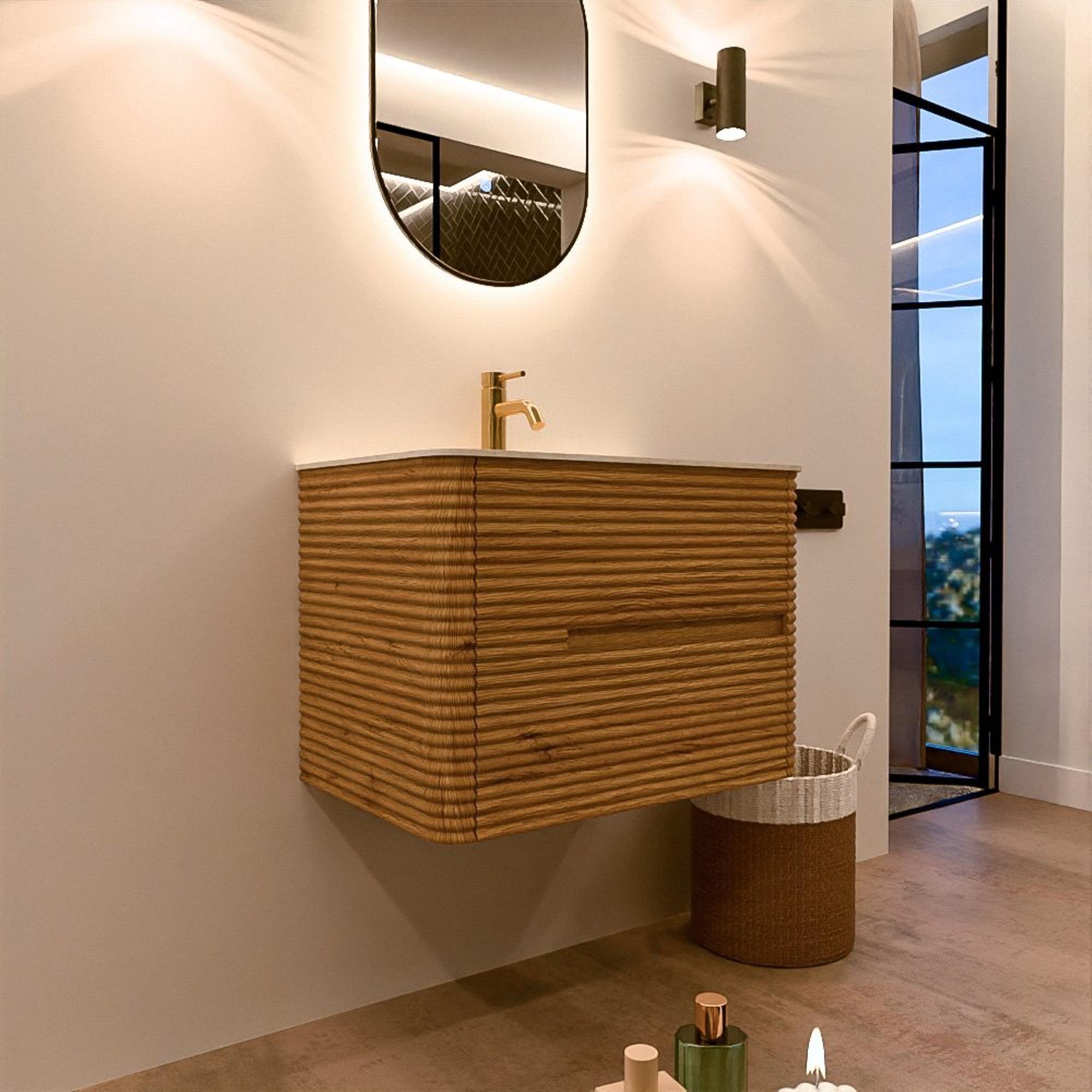 Mondiaz CIRO-DLUX Badkamermeubelset - 70x45x50cm - Solid surface wastafel Ostra - 1 wasbak Midden - 1 kraangat - 2 lades - Oak