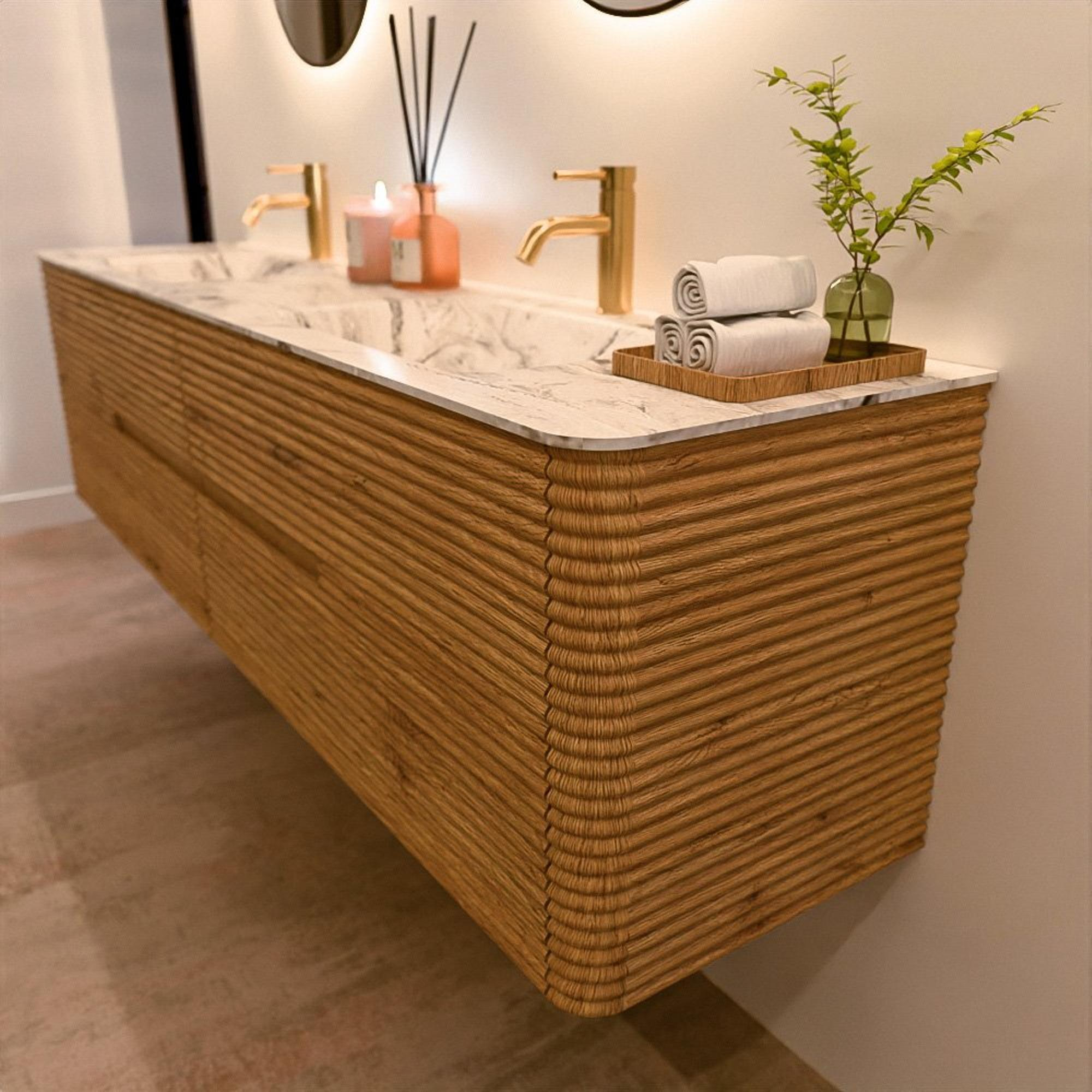 Het CIRO-DLUX badkamermeubel is ontwikkeld voor wie kiest voor modern design, natuurlijke materialen en hoogwaardige functionaliteit. Met maatvoeringen van 70 cm tot 190 cm past de CIRO-serie moeiteloos in zowel compacte badkamers als royale designruimtes. Elk meubel is een uitgebalanceerde combinatie van esthetiek, ambacht en duurzame kwaliteit.