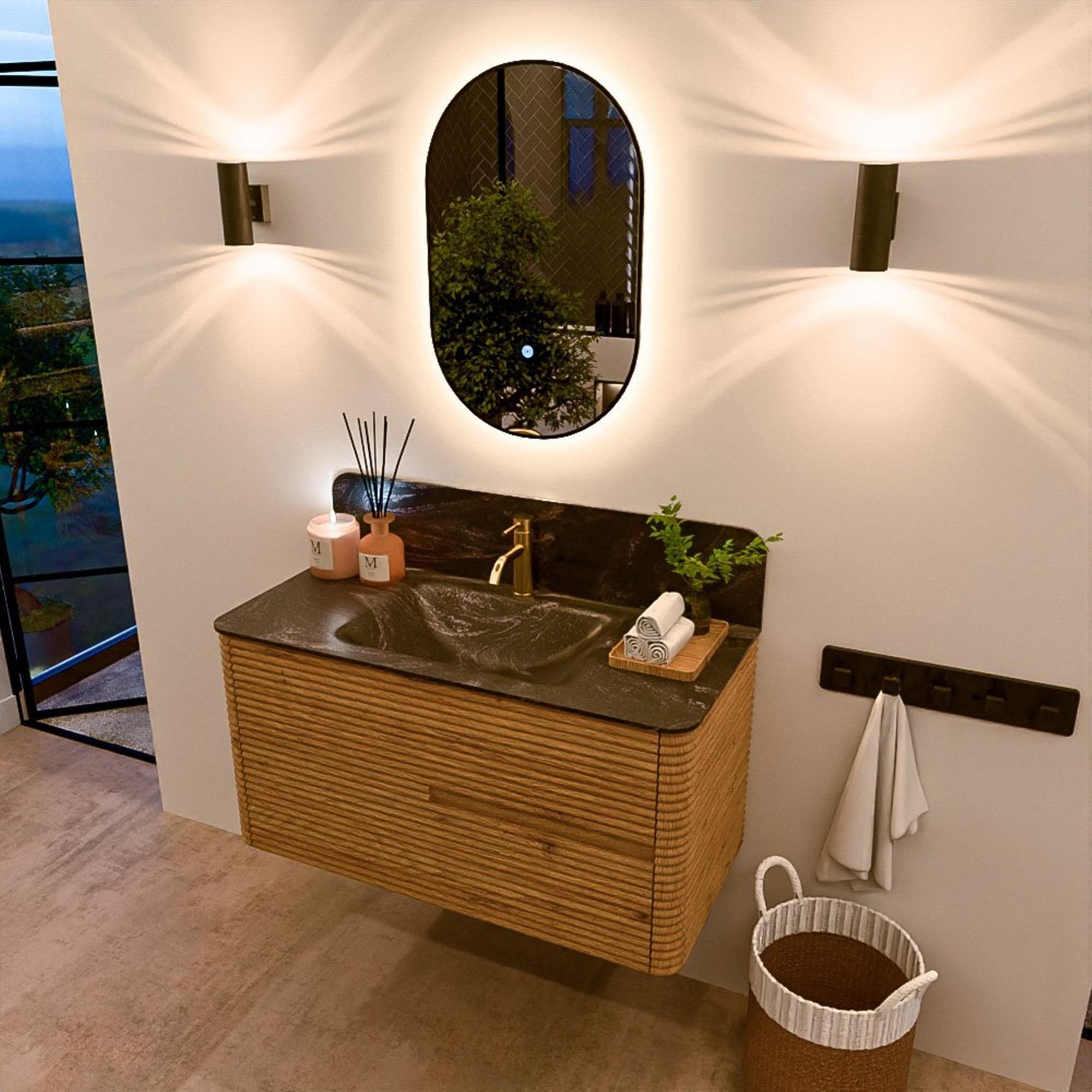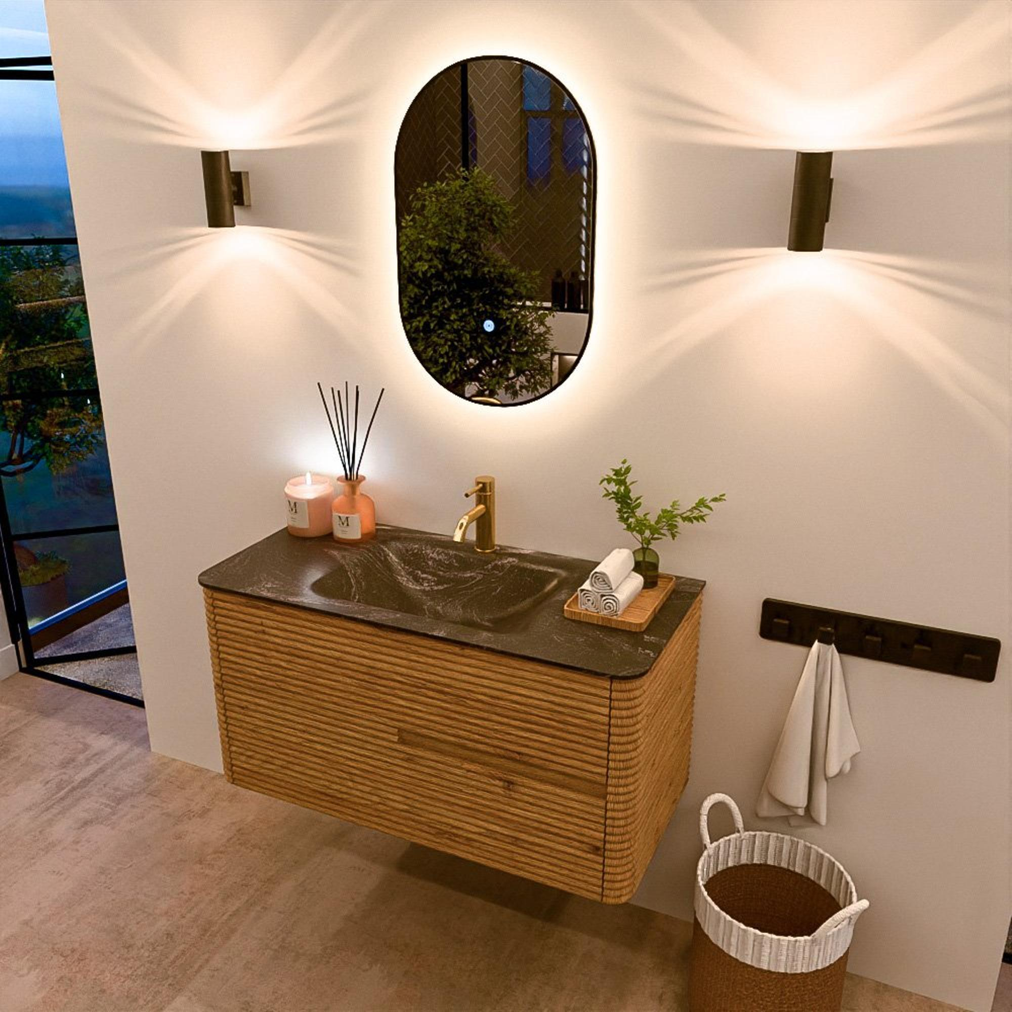 Mondiaz CIRO-DLUX Badkamermeubelset - 100x45x50cm - Solid surface wastafel Lava - 1 wasbak Midden - 1 kraangat - 2 lades - Oak