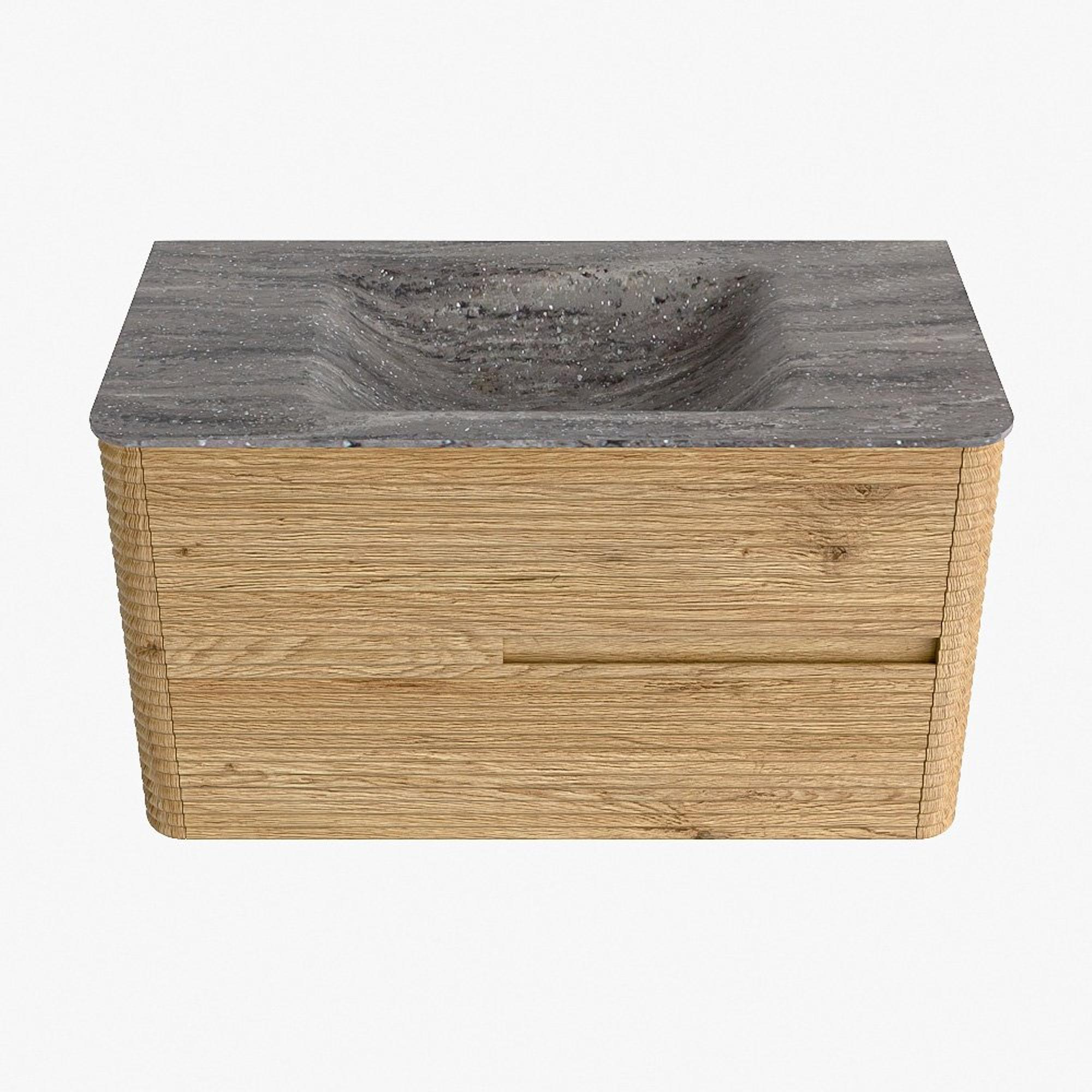 Mondiaz CIRO-DLUX Badkamermeubelset - 90x45x50cm - Solid surface wastafel Oza - 1 wasbak Midden - 1 kraangat - 2 lades - Oak
