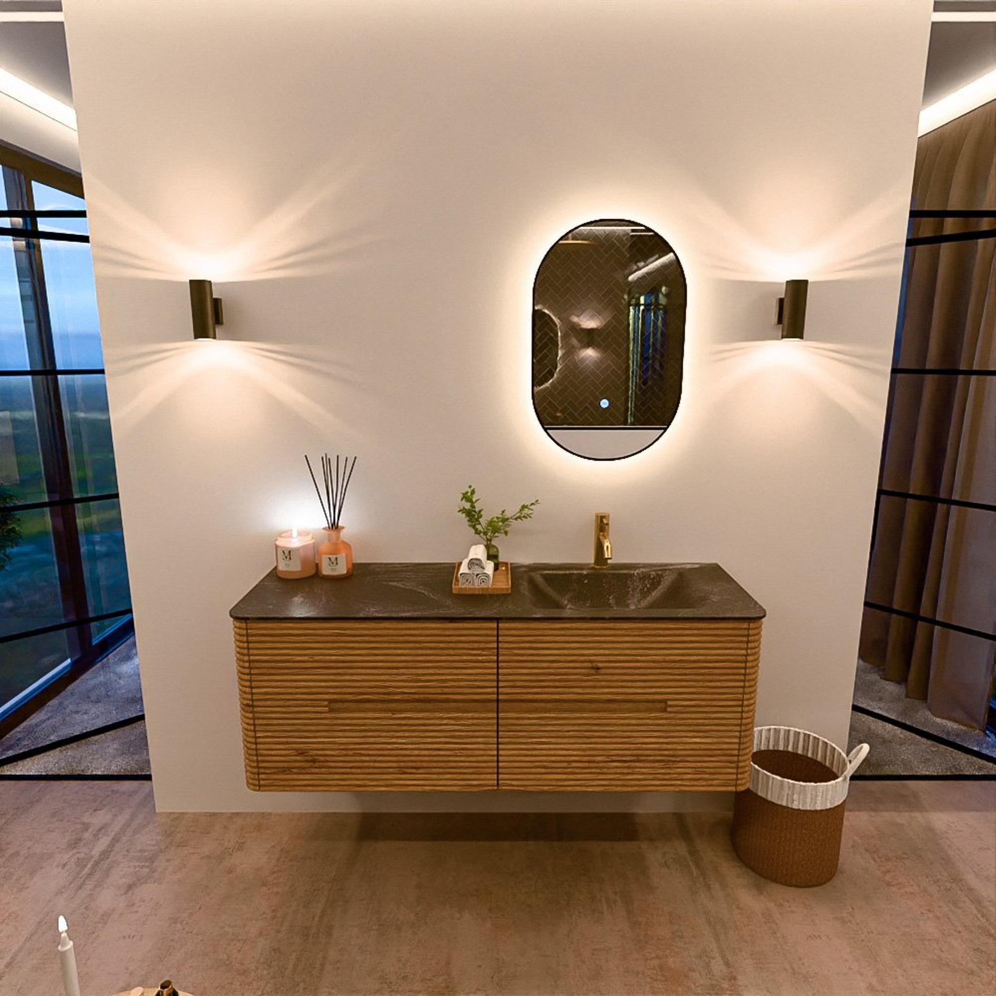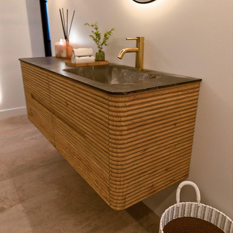 Mondiaz CIRO-DLUX Badkamermeubelset - 140x45x50cm - Solid surface wastafel Lava - 1 wasbak Rechts - 1 kraangat - 4 lades - Oak