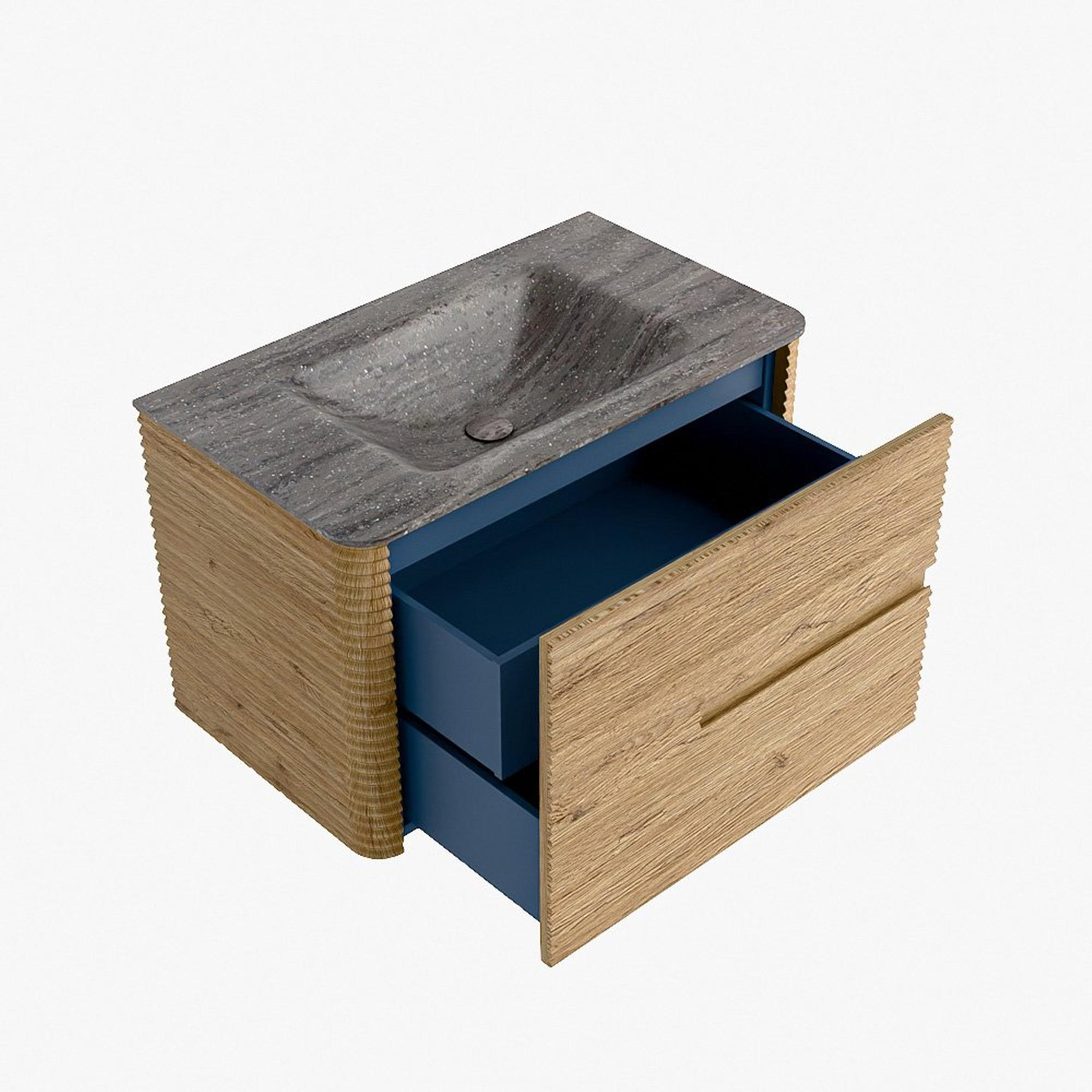 Mondiaz CIRO-DLUX Badkamermeubelset - 80x45x50cm - Solid surface wastafel Oza - 1 wasbak Midden - 1 kraangat - 2 lades - Oak