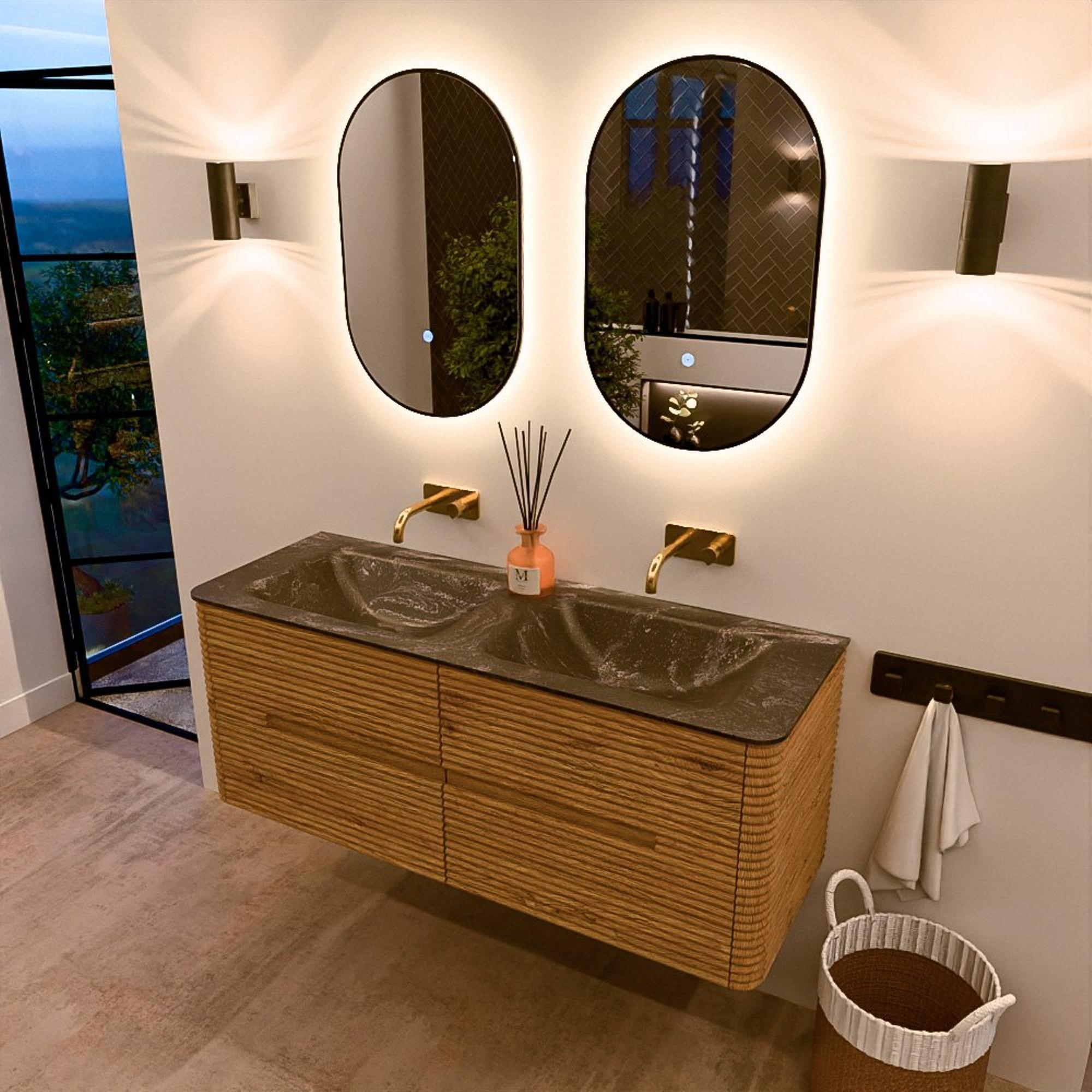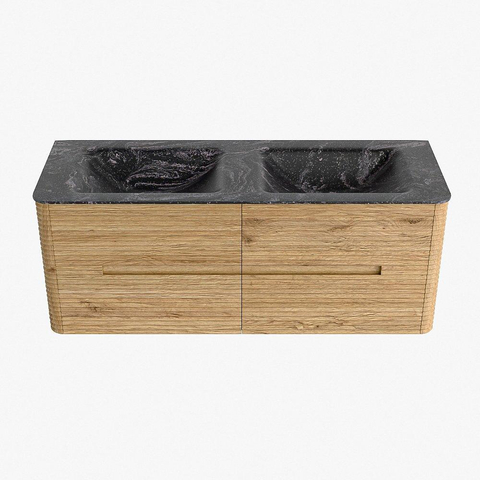 Mondiaz CIRO-DLUX Badkamermeubelset - 130x45x50cm - Solid surface wastafel Lava - 2 wasbak Dubbel - zonder kraangaten - 4 lades - Oak
