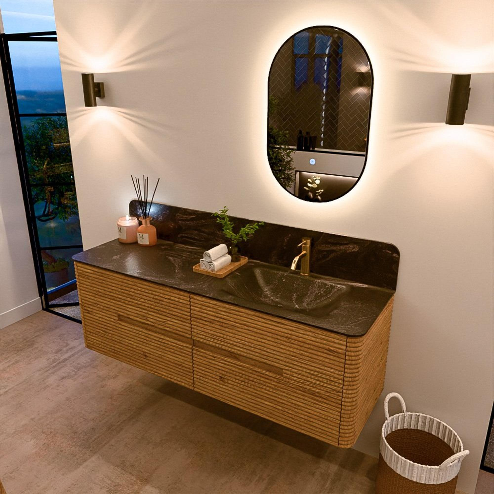 Mondiaz CIRO-DLUX Badkamermeubelset - 150x45x50cm - Solid surface wastafel Lava - 1 wasbak Rechts - 1 kraangat - 4 lades - Oak