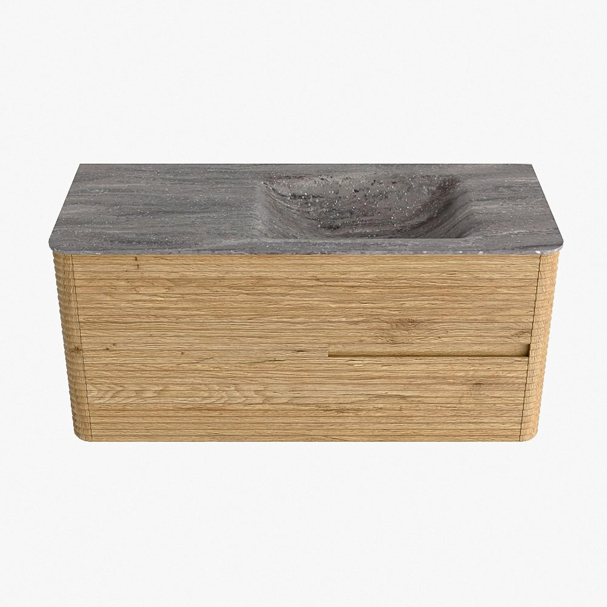 Mondiaz CIRO-DLUX Badkamermeubelset - 110x45x50cm - Solid surface wastafel Oza - 1 wasbak Rechts - zonder kraangaten - 2 lades - Oak