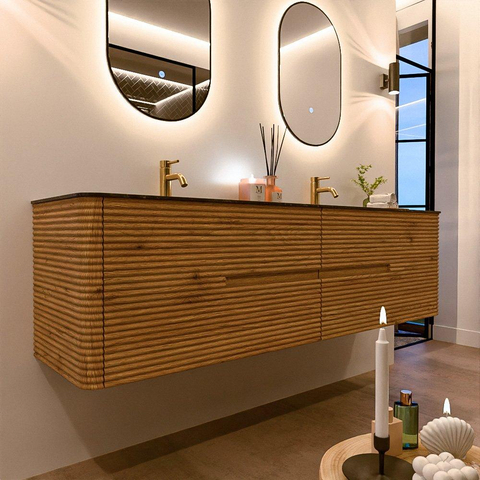 Mondiaz CIRO-DLUX Badkamermeubelset - 180x45x50cm - Solid surface wastafel Lava - 2 wasbak Dubbel - 2 kraangaten - 4 lades - Oak