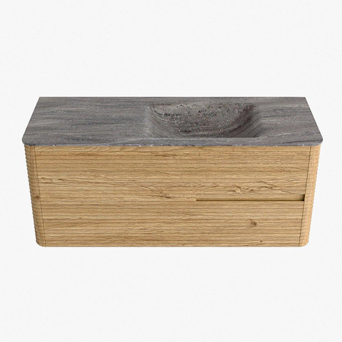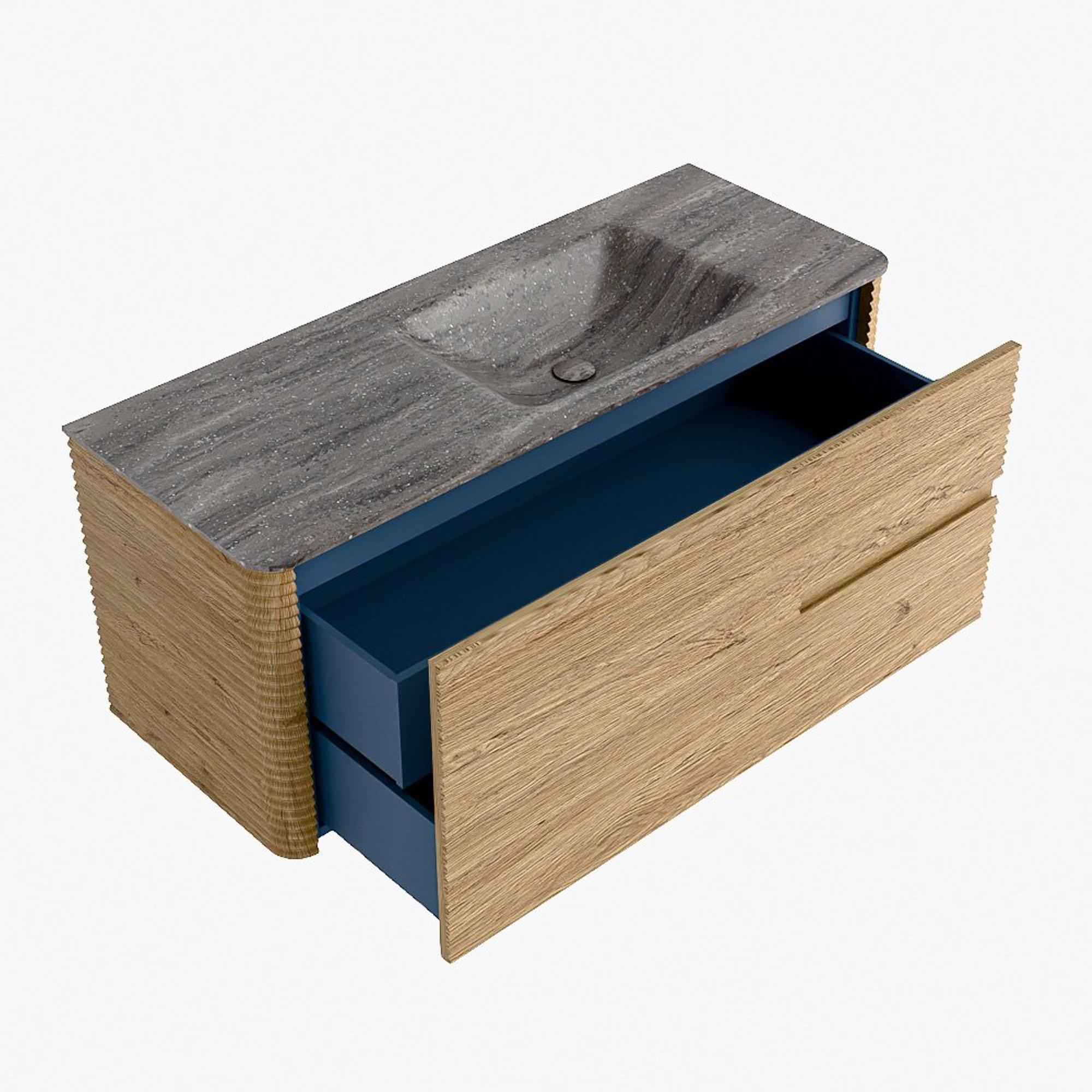 Mondiaz CIRO-DLUX Badkamermeubelset - 120x45x50cm - Solid surface wastafel Oza - 1 wasbak Rechts - zonder kraangaten - 2 lades - Oak