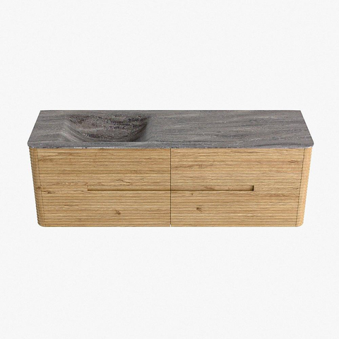 Mondiaz CIRO-DLUX Badkamermeubelset - 150x45x50cm - Solid surface wastafel Oza - 1 wasbak Links - zonder kraangaten - 4 lades - Oak