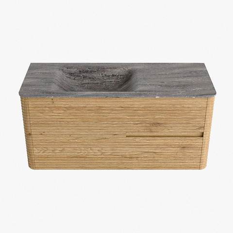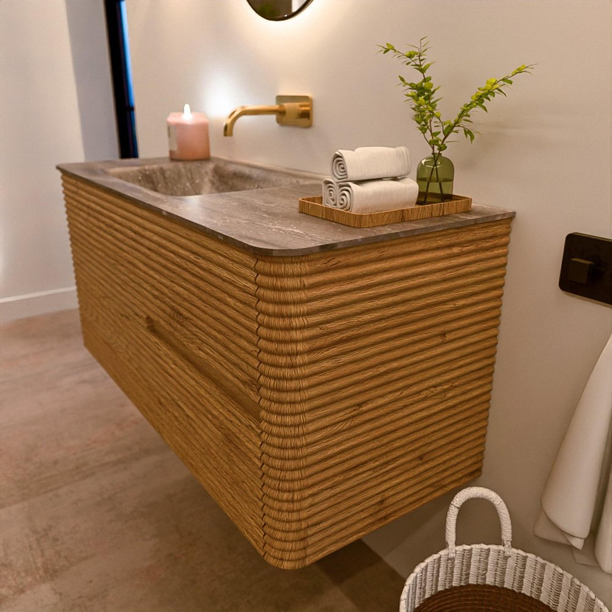 Mondiaz CIRO-DLUX Badkamermeubelset - 110x45x50cm - Solid surface wastafel Oza - 1 wasbak Links - zonder kraangaten - 2 lades - Oak