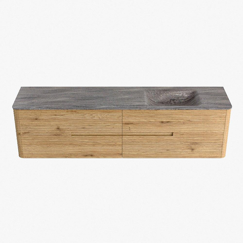 Mondiaz CIRO-DLUX Badkamermeubelset - 190x45x50cm - Solid surface wastafel Oza - 1 wasbak Rechts - zonder kraangaten - 4 lades - Oak