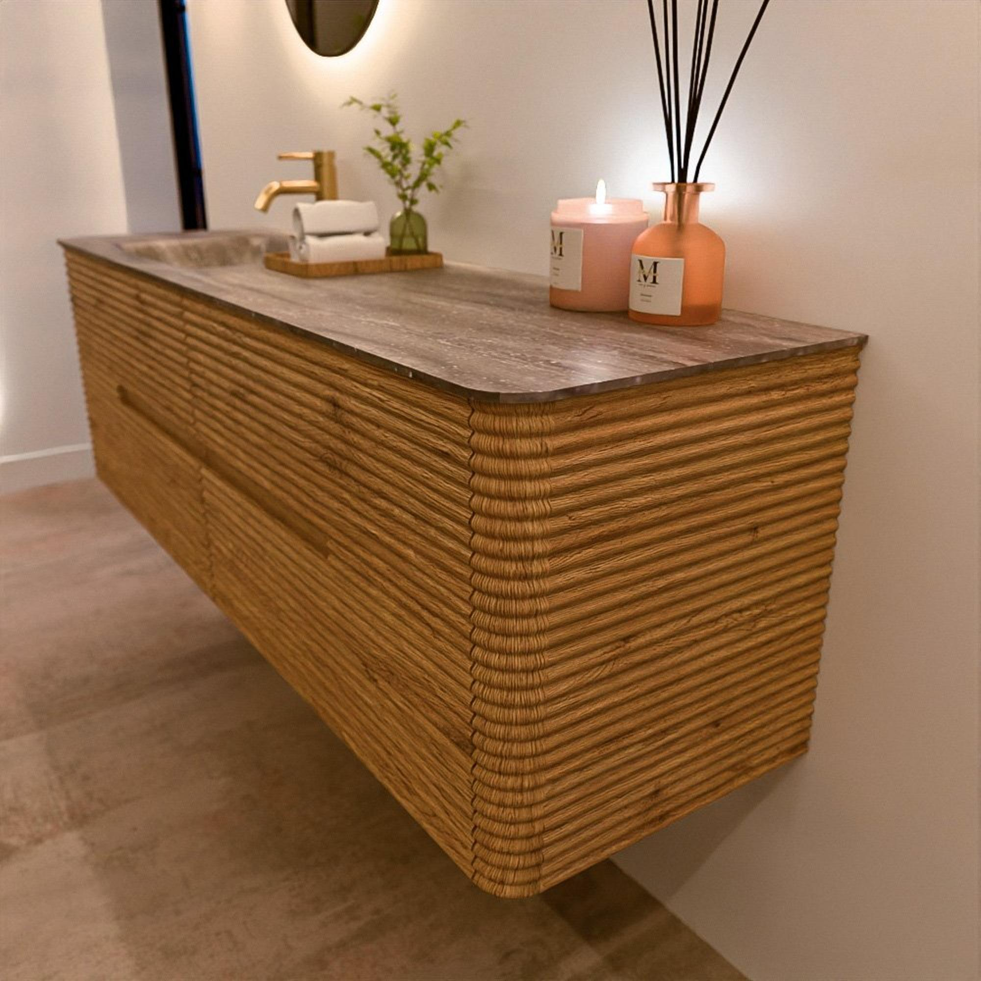 Het CIRO-DLUX badkamermeubel is ontwikkeld voor wie kiest voor modern design, natuurlijke materialen en hoogwaardige functionaliteit. Met maatvoeringen van 70 cm tot 190 cm past de CIRO-serie moeiteloos in zowel compacte badkamers als royale designruimtes. Elk meubel is een uitgebalanceerde combinatie van esthetiek, ambacht en duurzame kwaliteit.