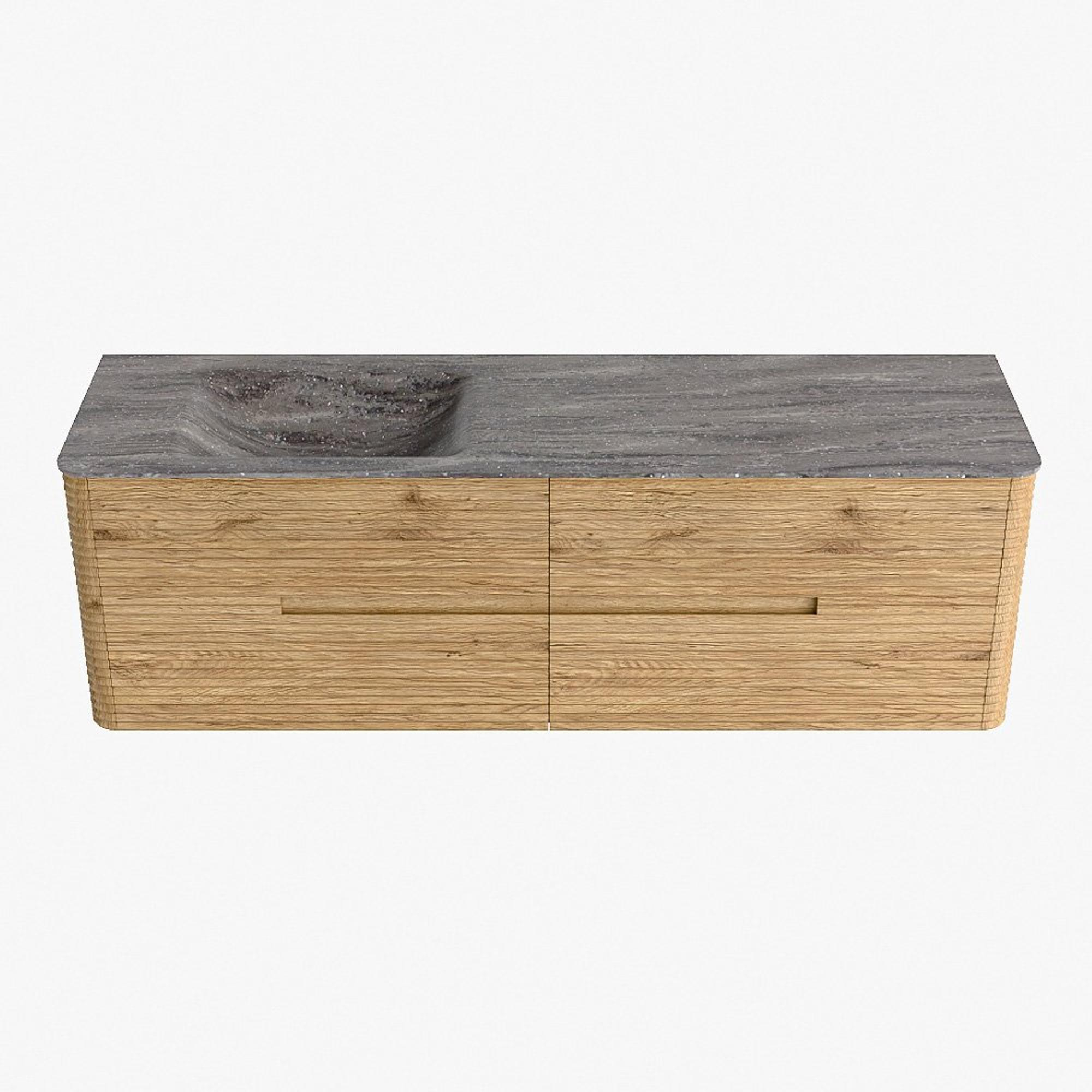 Mondiaz CIRO-DLUX Badkamermeubelset - 160x45x50cm - Solid surface wastafel Oza - 1 wasbak Links - 1 kraangat - 4 lades - Oak