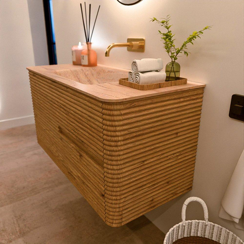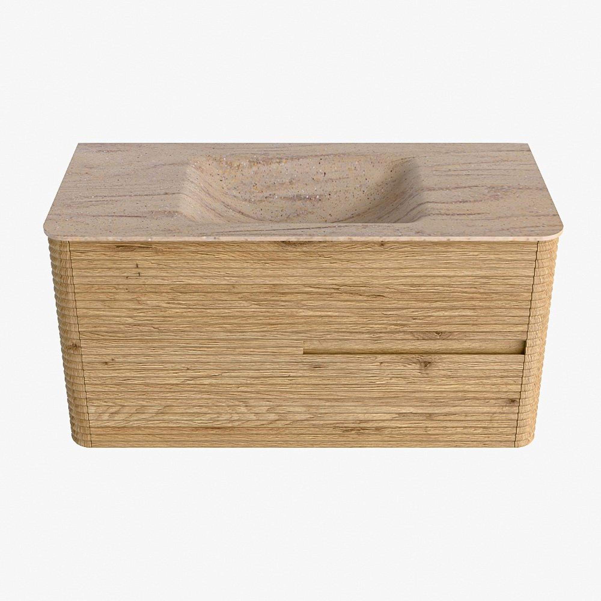 Mondiaz CIRO-DLUX Badkamermeubelset - 100x45x50cm - Solid surface wastafel Saba - 1 wasbak Midden - zonder kraangaten - 2 lades - Oak