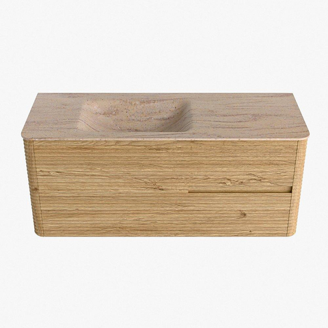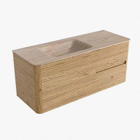 Mondiaz CIRO-DLUX Badkamermeubelset - 120x45x50cm - Solid surface wastafel Saba - 1 wasbak Links - zonder kraangaten - 2 lades - Oak
