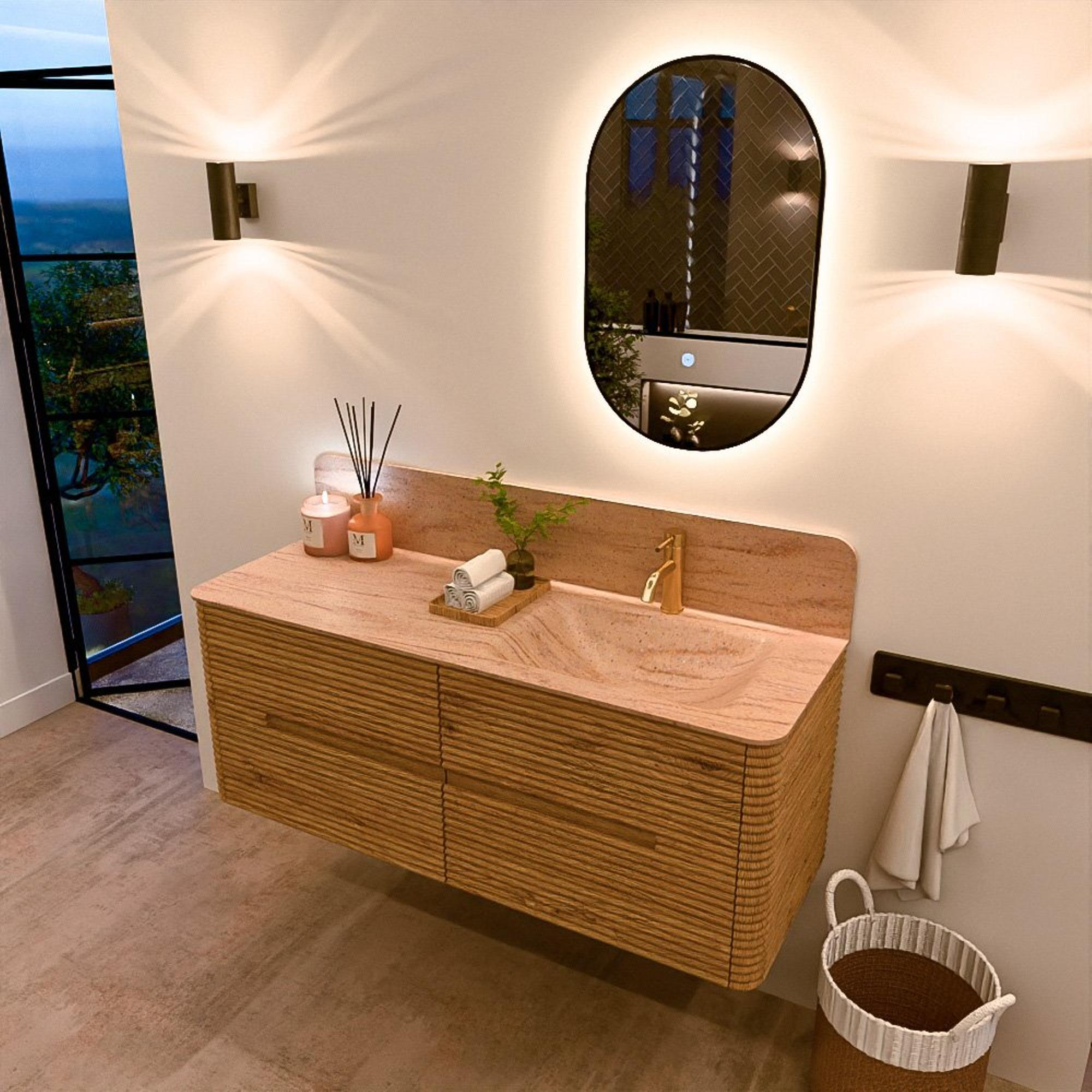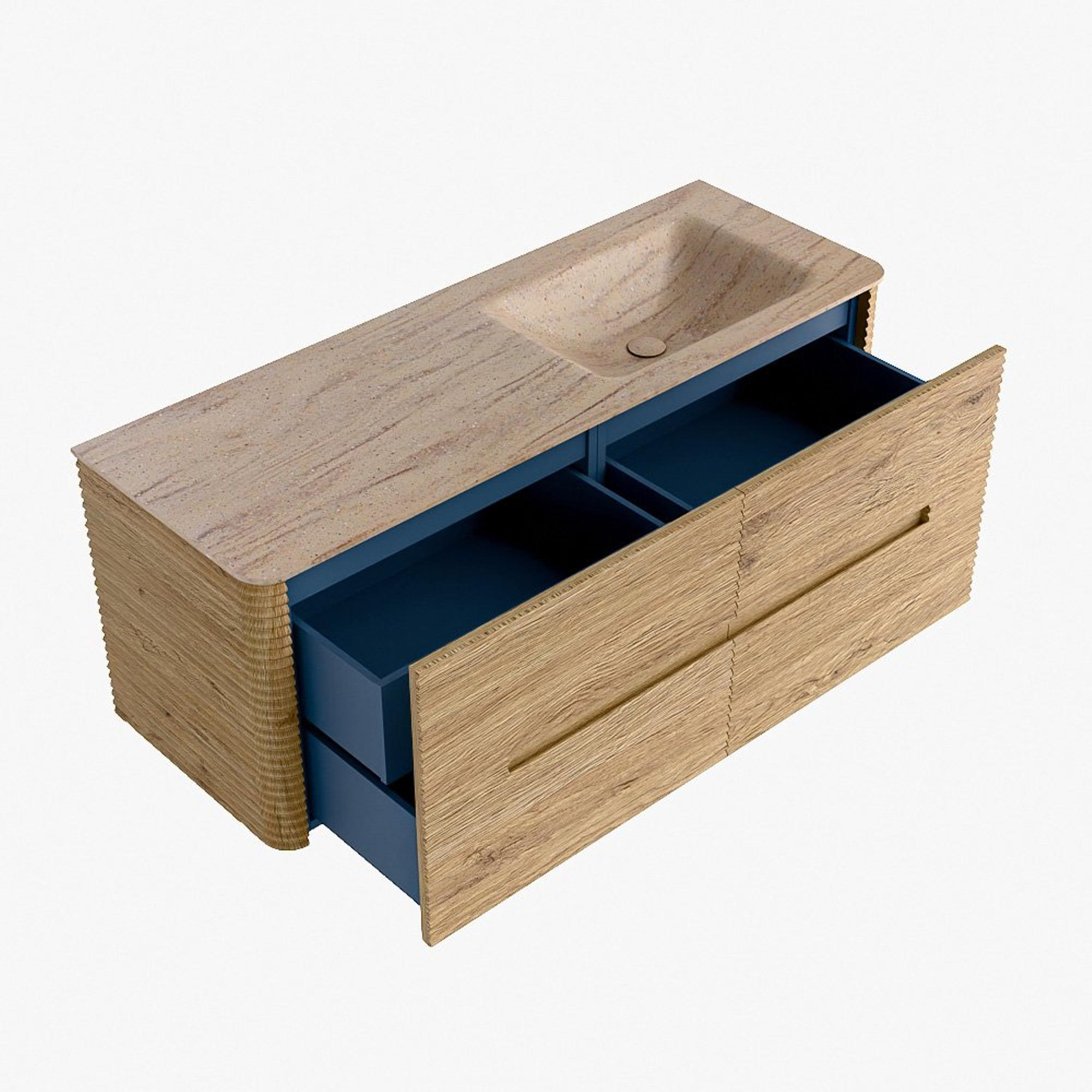 Mondiaz CIRO-DLUX Badkamermeubelset - 130x45x50cm - Solid surface wastafel Saba - 1 wasbak Rechts - 1 kraangat - 4 lades - Oak