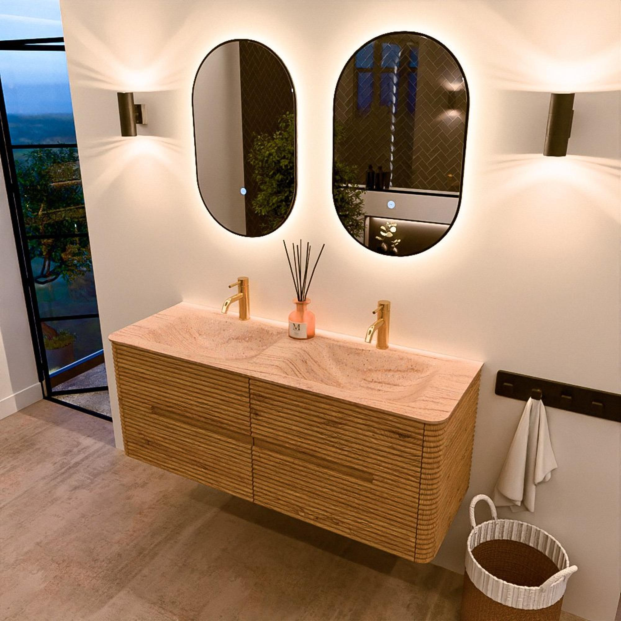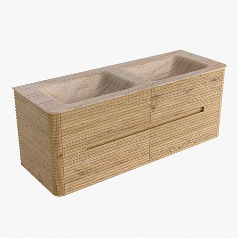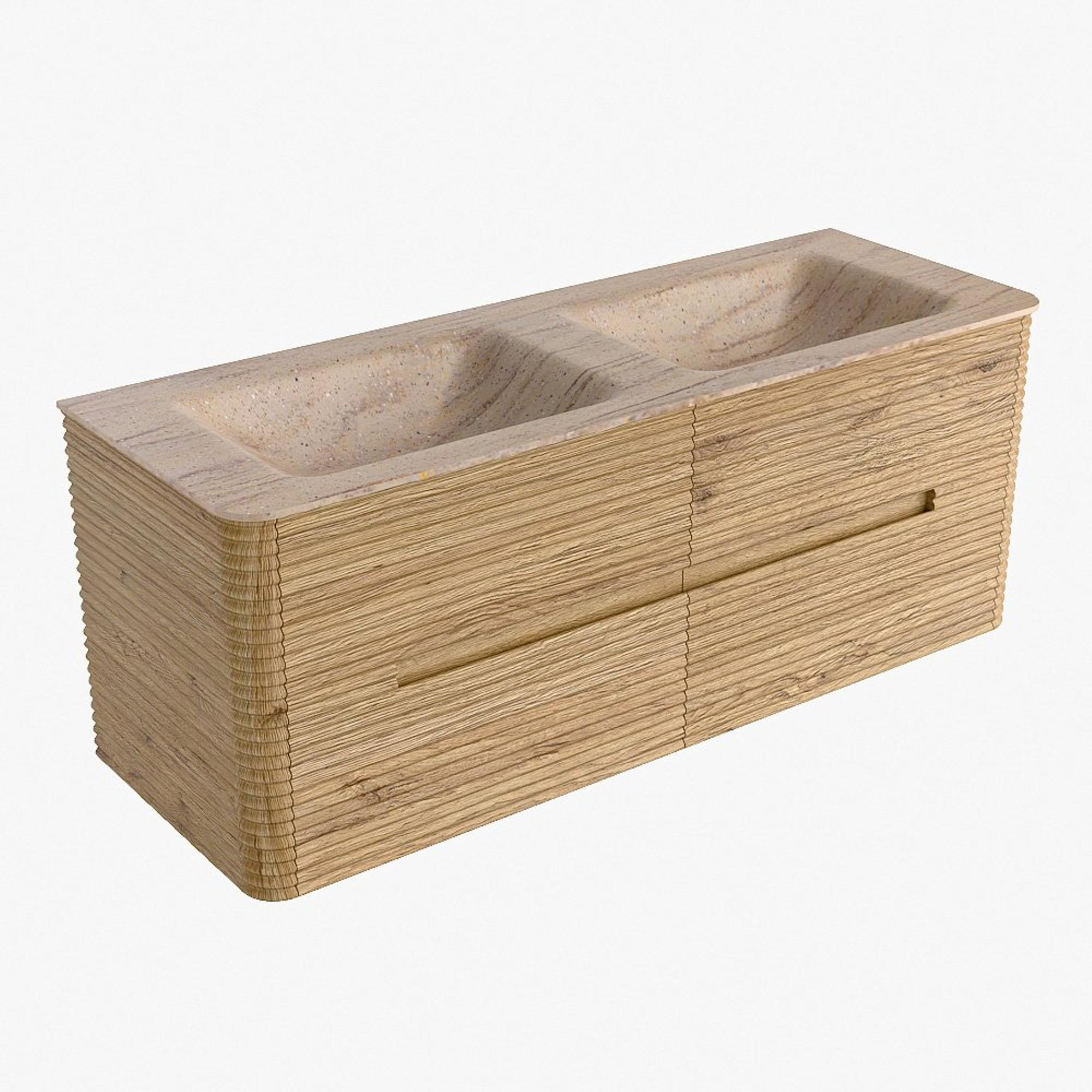 Mondiaz CIRO-DLUX Badkamermeubelset - 130x45x50cm - Solid surface wastafel Saba - 2 wasbak Dubbel - 2 kraangaten - 4 lades - Oak