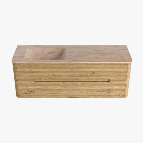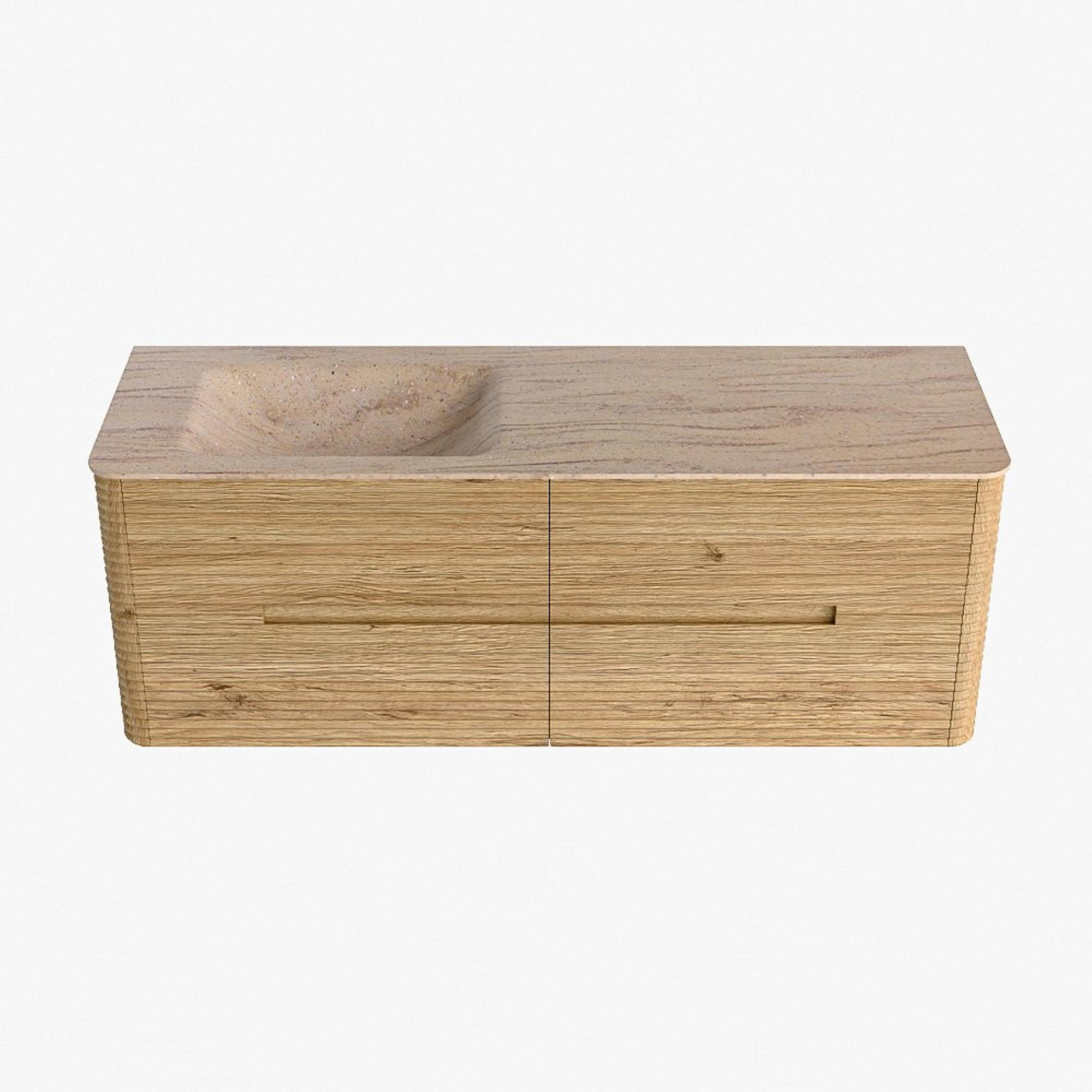 Mondiaz CIRO-DLUX Badkamermeubelset - 140x45x50cm - Solid surface wastafel Saba - 1 wasbak Links - 1 kraangat - 4 lades - Oak